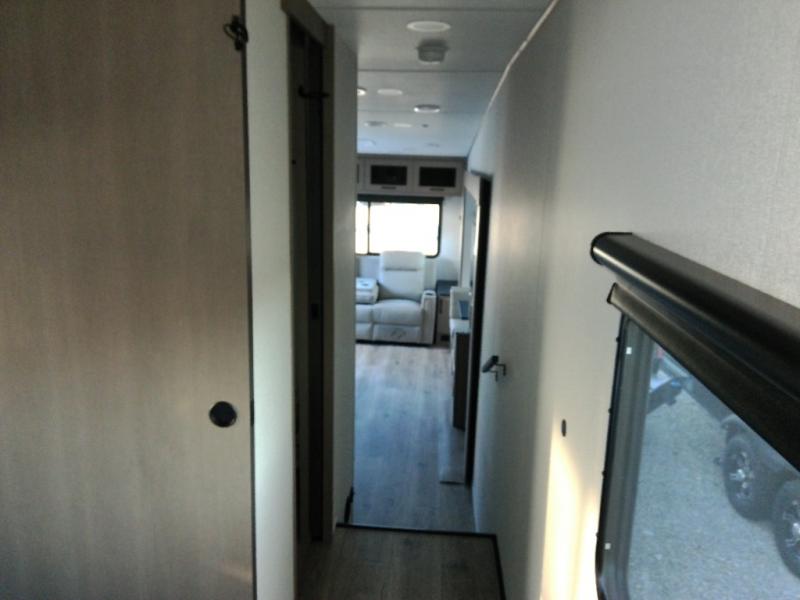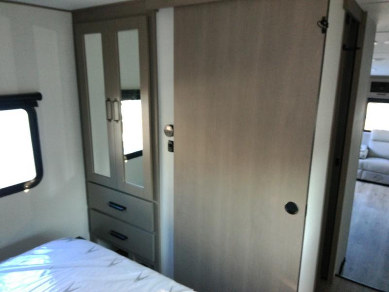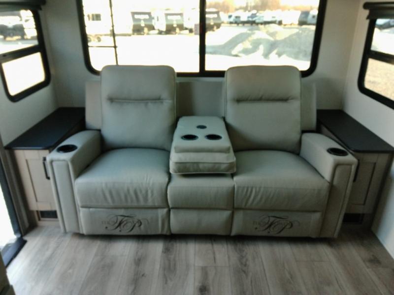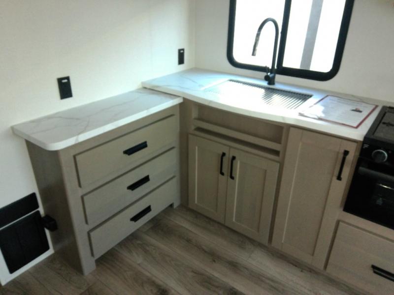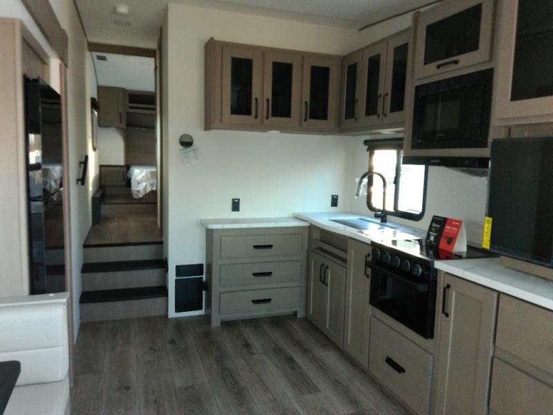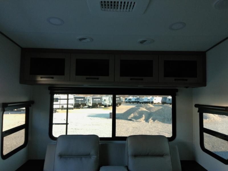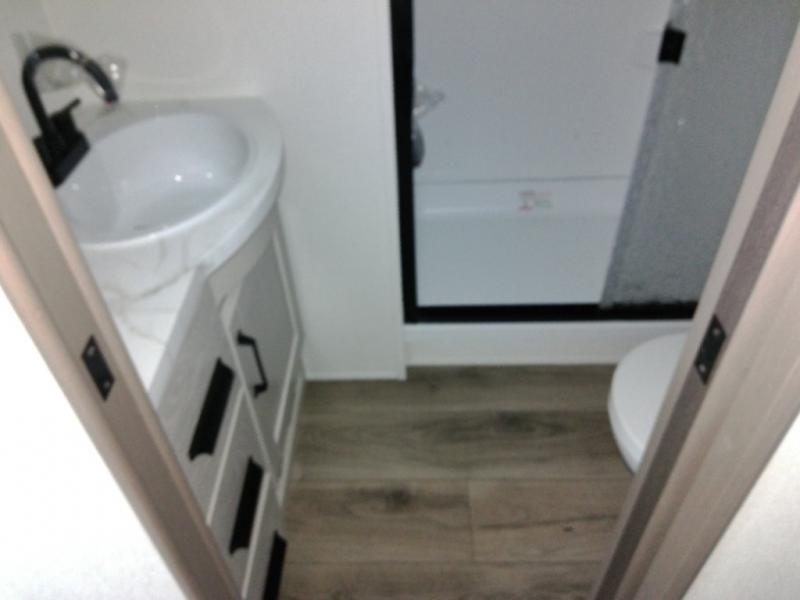 This is the perfect couple's trailer with a space for an overnight guest or two little ones on the booth dinette. A 40" HDTV will keep you entertained when the weather isn't cooperating, and you can whip up your best meals in the full kitchen. And a 19' power awning will provide shade if you choose to take your plate outdoors! The spacious full bath will let you clean up each day, and you'll feel right at home in the front private bedroom with a queen bed!