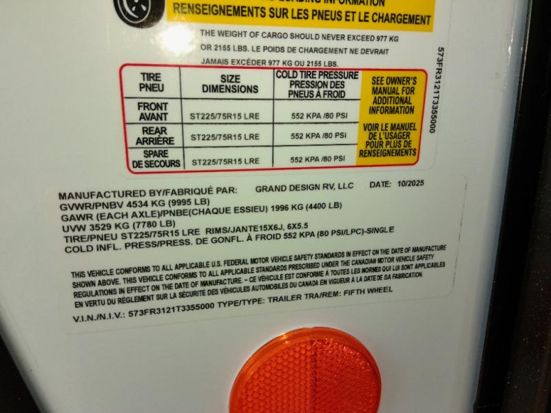 New 2026 Grand Design Reflection 100 Series 24RL Fifth Wheel
