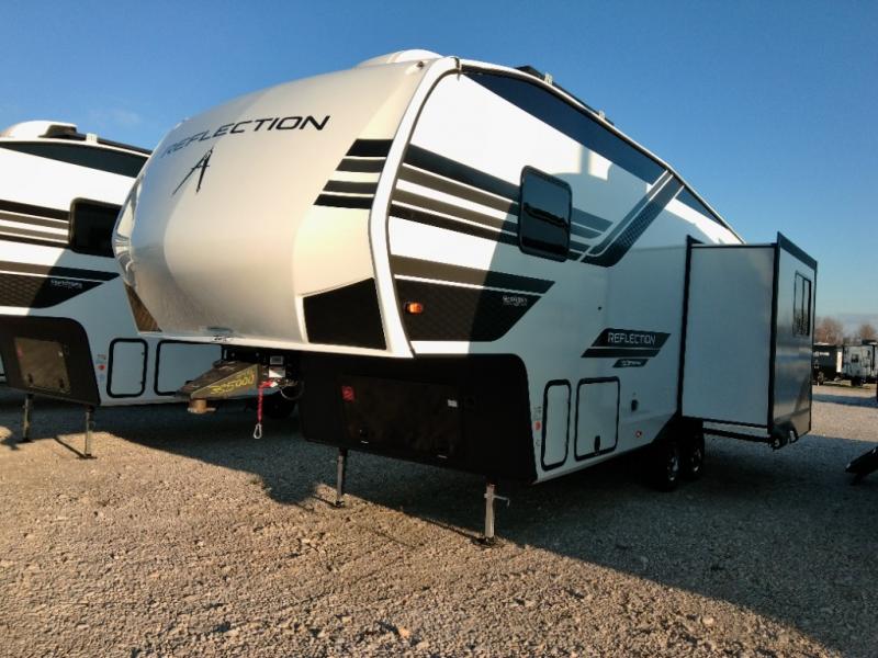 Each Reflection 100 Series fifth wheel by Grand Design is affordable and packed with luxury for unforgettable camping memories! The MorRyde CRE3000 suspension system and Goodyear Endurance tires will provide smooth towing from home to campground. And the solar package with a 180W solar panel, 60 Amp charge controller and 12V refrigerator will allow you to camp for longer periods of time and in more locations! A heated and enclosed underbelly with circulating heat is included in the Arctic 4-Seasons Protection Package, along with a double insulated roof and front cap, and thermofoil insulation under the holding tanks so you can camp all year long if you choose. You will appreciate having an on-demand water heater for hot showers after exploring, and the universal all-in-one docking station will let you monitor your RVs tanks levels and functions with ease. These models also include many luxurious interior features, such as premium Congoleum flooring, pleated shades, residential cabinetry, and matte black fixtures and hardware. Don't let the Reflection 100 Series fifth wheels pass you by!