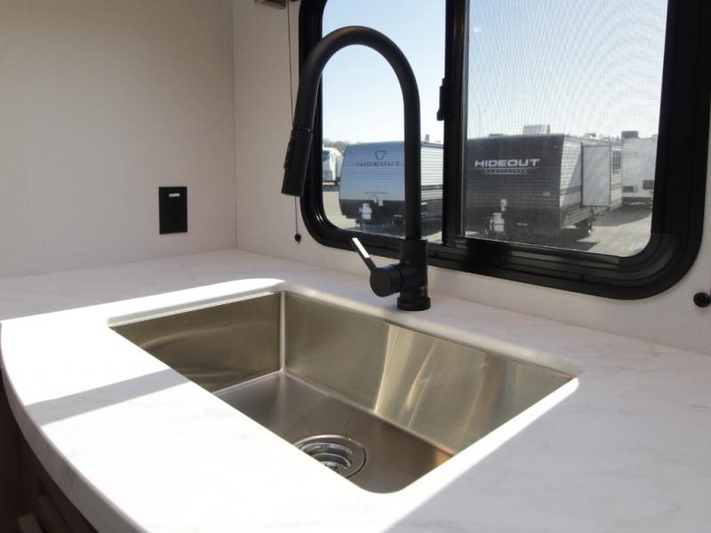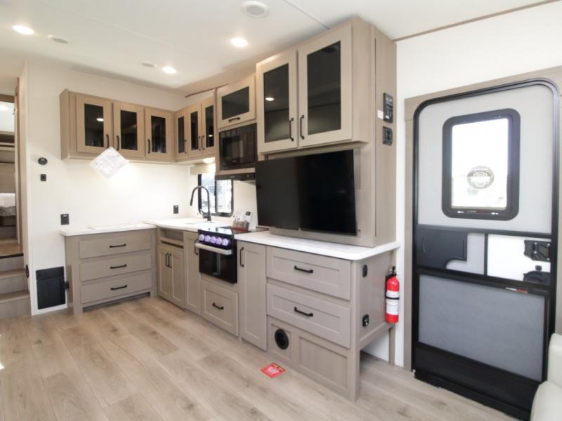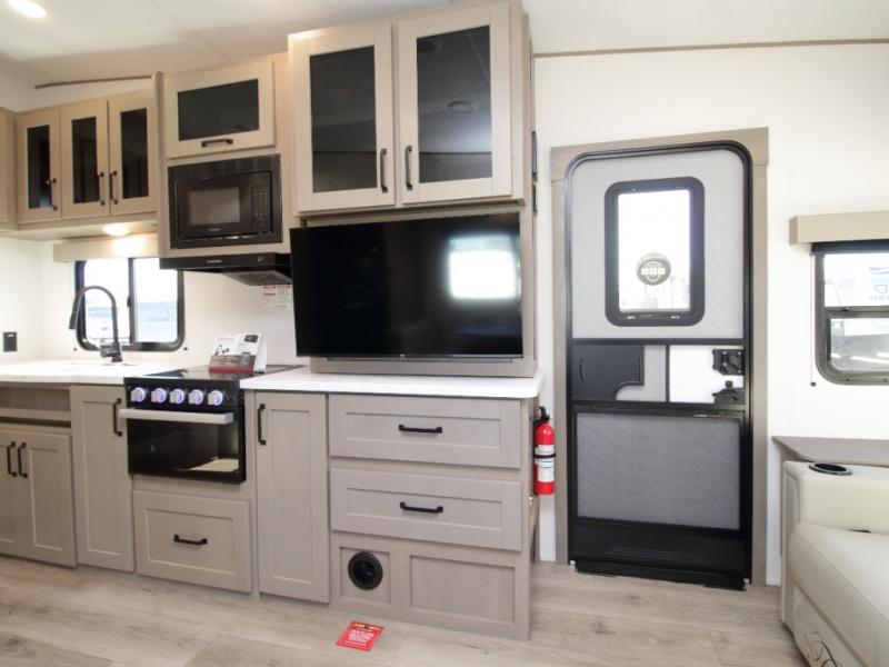 Stay entertained indoors with the 40" HDTV, and enjoy preparing meals in the fully equipped kitchen designed for extended stays. When the weather is nice, take advantage of the 19-foot power awning to relax outdoors in the shade.