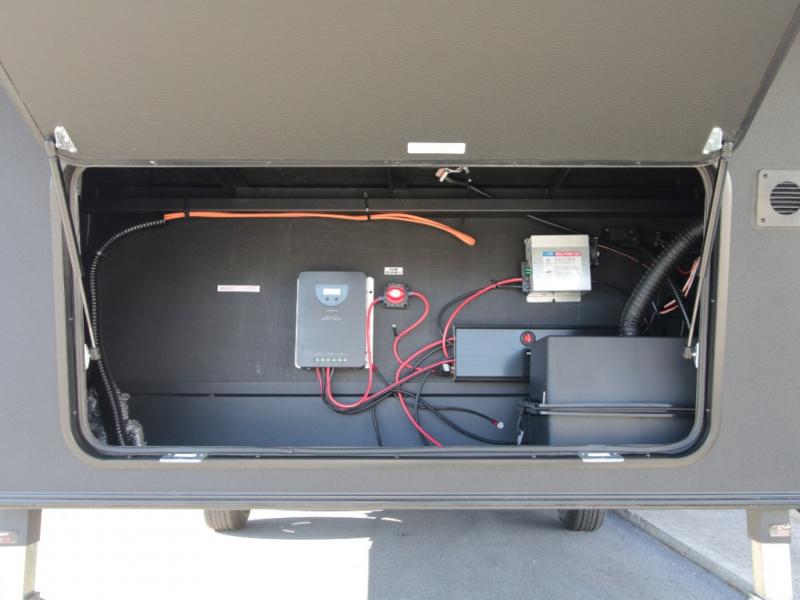 The included solar package features a 180W solar panel, a 60-amp charge controller, and a 12V refrigerator, allowing for longer stays and off-grid camping. The Arctic 4-Seasons Protection Package adds a heated and enclosed underbelly with circulating heat, double-insulated roof and front cap, and thermofoil insulation beneath the holding tanks for year-round camping confidence.