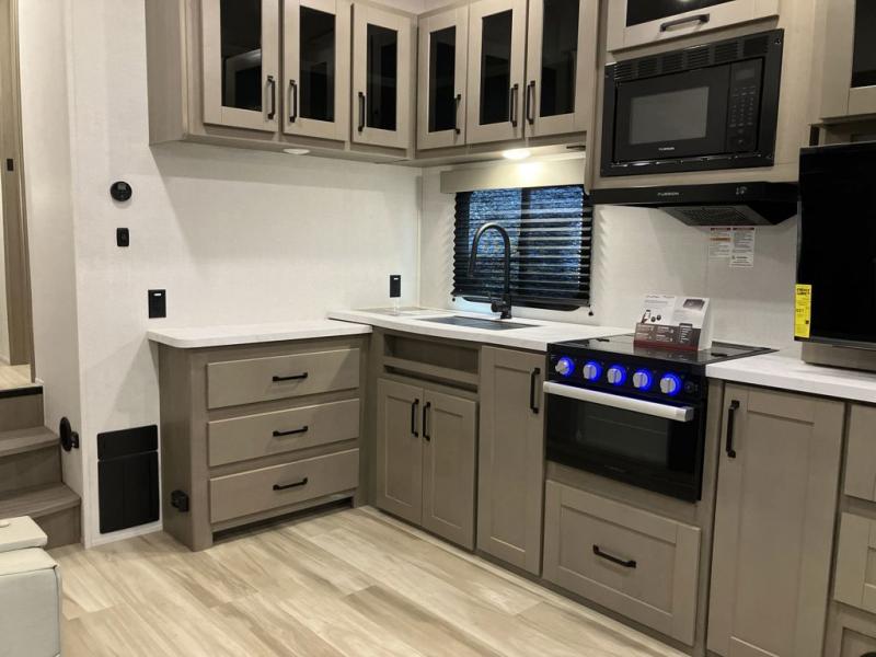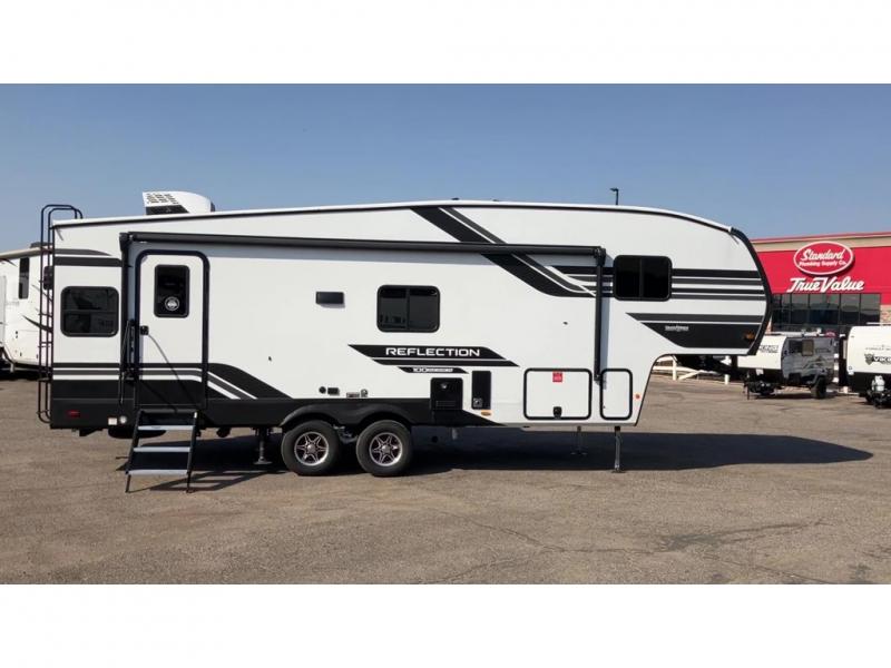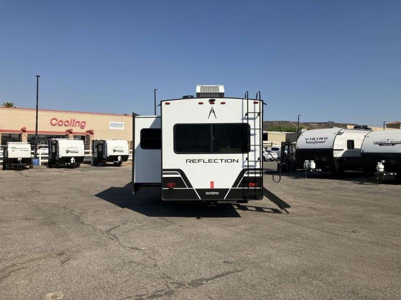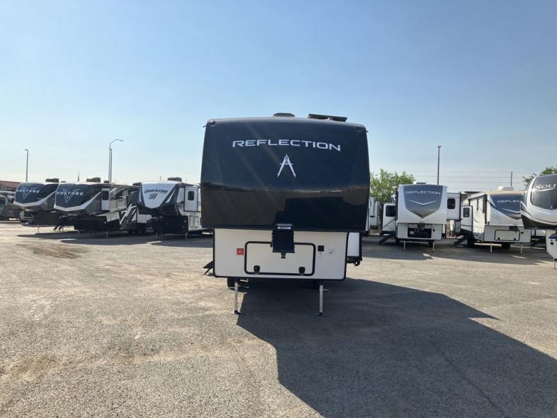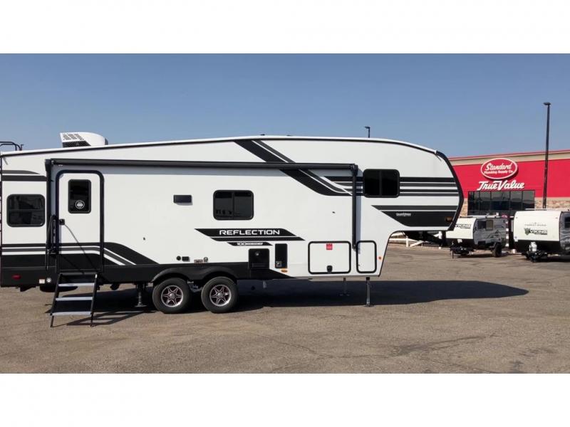 Each Reflection 100 Series fifth wheel by Grand Design is affordable and packed with luxury for unforgettable camping memories! The MorRyde CRE3000 suspension system and Goodyear Endurance tires will provide smooth towing from home to campground. And the solar package with a 180W solar panel, 60 Amp charge controller and 12V refrigerator will allow you to camp for longer periods of time and in more locations! A heated and enclosed underbelly with circulating heat is included in the Arctic 4-Seasons Protection Package, along with a double insulated roof and front cap, and thermofoil insulation under the holding tanks so you can camp all year long if you choose. You will appreciate having an on-demand water heater for hot showers after exploring, and the universal all-in-one docking station will let you monitor your RVs tanks levels and functions with ease. These models also include many luxurious interior features, such as premium Congoleum flooring, pleated shades, residential cabinetry, and matte black fixtures and hardware. Don't let the Reflection 100 Series fifth wheels pass you by!