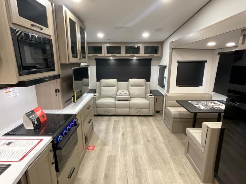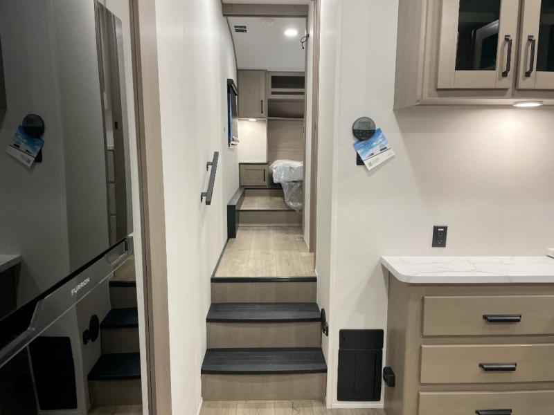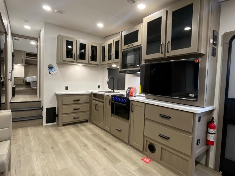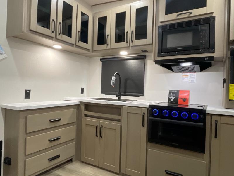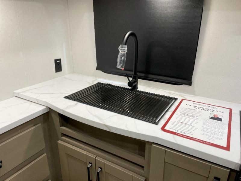 Each Reflection 100 Series fifth wheel by Grand Design is affordable and packed with luxury for unforgettable camping memories! The MorRyde CRE3000 suspension system and Goodyear Endurance tires will provide smooth towing from home to campground. And the solar package with a 180W solar panel, 60 Amp charge controller and 12V refrigerator will allow you to camp for longer periods of time and in more locations! A heated and enclosed underbelly with circulating heat is included in the Arctic 4-Seasons Protection Package, along with a double insulated roof and front cap, and thermofoil insulation under the holding tanks so you can camp all year long if you choose. You will appreciate having an on-demand water heater for hot showers after exploring, and the universal all-in-one docking station will let you monitor your RVs tanks levels and functions with ease. These models also include many luxurious interior features, such as premium Congoleum flooring, pleated shades, residential cabinetry, and matte black fixtures and hardware. Don't let the Reflection 100 Series fifth wheels pass you by!