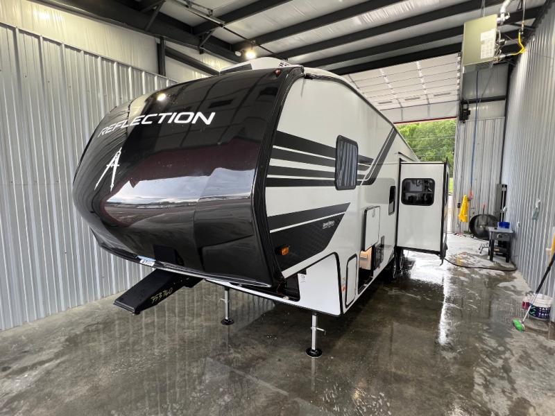 Each Reflection 100 Series fifth wheel by Grand Design is affordable and packed with luxury for unforgettable camping memories! The MorRyde CRE3000 suspension system and Goodyear Endurance tires will provide smooth towing from home to campground. And the solar package with a 180W solar panel, 60 Amp charge controller and 12V refrigerator will allow you to camp for longer periods of time and in more locations! A heated and enclosed underbelly with circulating heat is included in the Arctic 4-Seasons Protection Package, along with a double insulated roof and front cap, and thermofoil insulation under the holding tanks so you can camp all year long if you choose. You will appreciate having an on-demand water heater for hot showers after exploring, and the universal all-in-one docking station will let you monitor your RVs tanks levels and functions with ease. These models also include many luxurious interior features, such as premium Congoleum flooring, pleated shades, residential cabinetry, and matte black fixtures and hardware. Don't let the Reflection 100 Series fifth wheels pass you by!