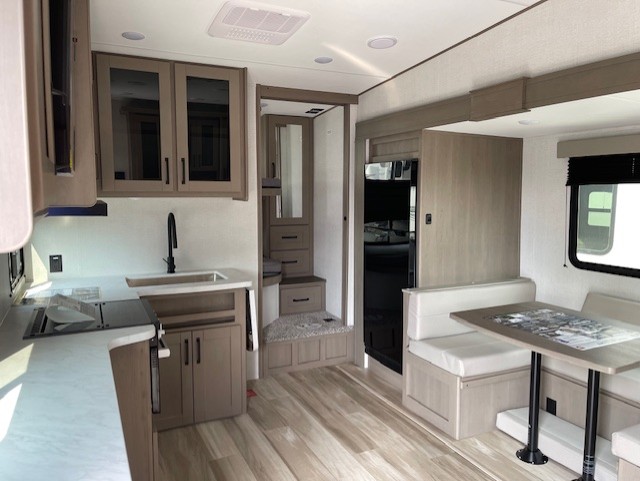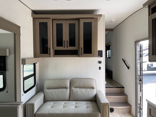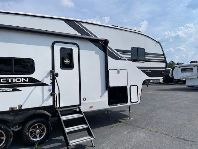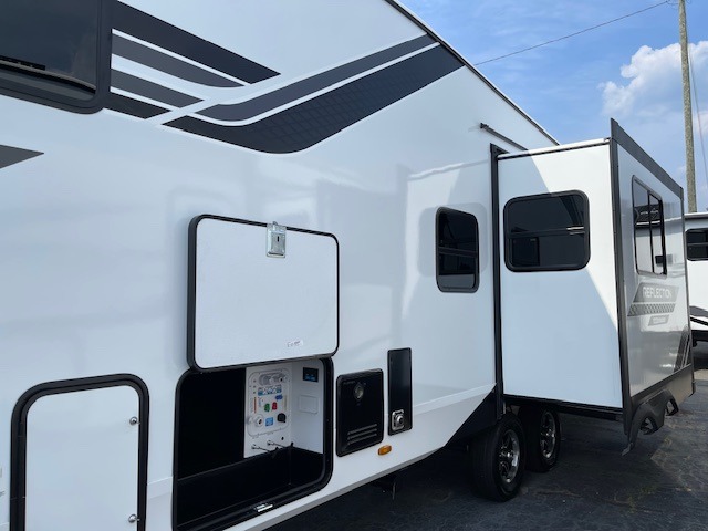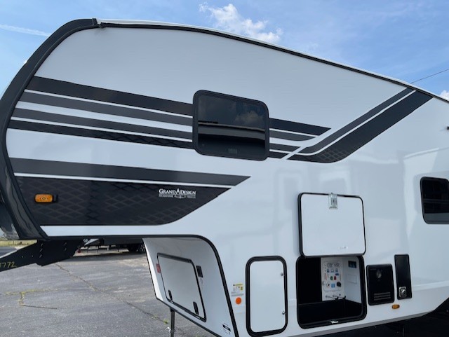 Each Reflection 100 Series fifth wheel by Grand Design is affordable and packed with luxury for unforgettable camping memories! The MorRyde CRE3000 suspension system and Goodyear Endurance tires will provide smooth towing from home to campground. And the solar package with a 180W solar panel, 60 Amp charge controller and 12V refrigerator will allow you to camp for longer periods of time and in more locations! A heated and enclosed underbelly with circulating heat is included in the Arctic 4-Seasons Protection Package, along with a double insulated roof and front cap, and thermofoil insulation under the holding tanks so you can camp all year long if you choose. You will appreciate having an on-demand water heater for hot showers after exploring, and the universal all-in-one docking station will let you monitor your RVs tanks levels and functions with ease. These models also include many luxurious interior features, such as premium Congoleum flooring, pleated shades, residential cabinetry, and matte black fixtures and hardware. Don't let the Reflection 100 Series fifth wheels pass you by!