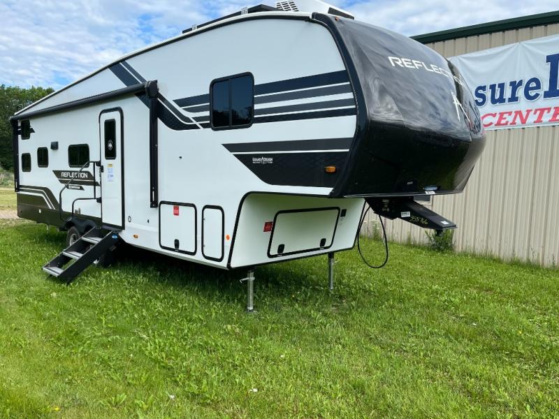 Each Reflection 100 Series fifth wheel by Grand Design is affordable and packed with luxury for unforgettable camping memories! The MorRyde CRE3000 suspension system and Goodyear Endurance tires will provide smooth towing from home to campground. And the solar package with a 180W solar panel, 60 Amp charge controller and 12V refrigerator will allow you to camp for longer periods of time and in more locations! A heated and enclosed underbelly with circulating heat is included in the Arctic 4-Seasons Protection Package, along with a double insulated roof and front cap, and thermofoil insulation under the holding tanks so you can camp all year long if you choose. You will appreciate having an on-demand water heater for hot showers after exploring, and the universal all-in-one docking station will let you monitor your RVs tanks levels and functions with ease. These models also include many luxurious interior features, such as premium Congoleum flooring, pleated shades, residential cabinetry, and matte black fixtures and hardware. Don't let the Reflection 100 Series fifth wheels pass you by!