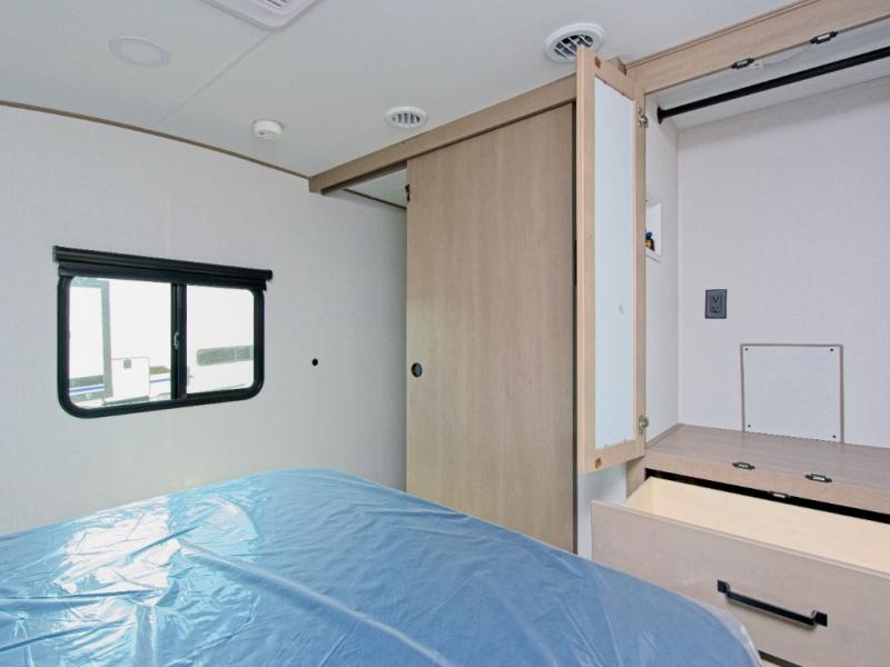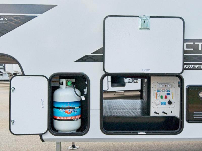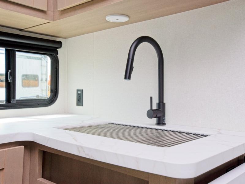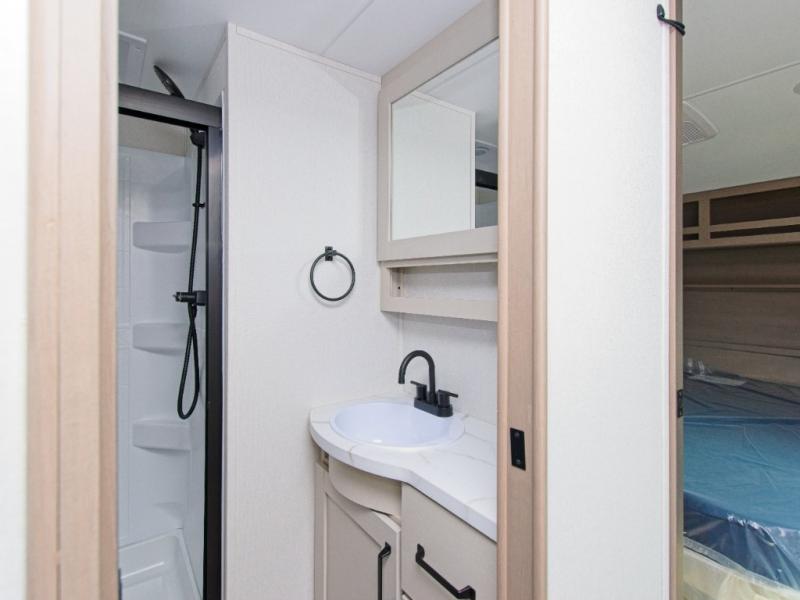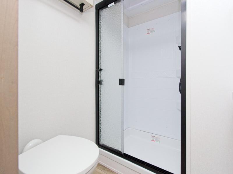 Rainy days are no problem with a 40" high-definition LED TV in the main living area, and the full bath features a residential walk-in shower, deep sink, large vanity, and power vent fan for added convenience.