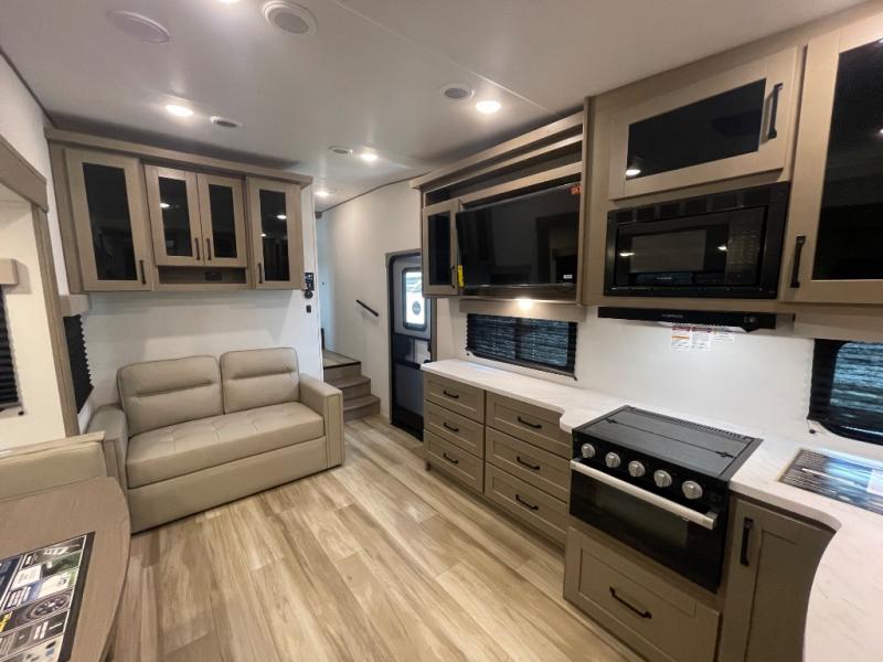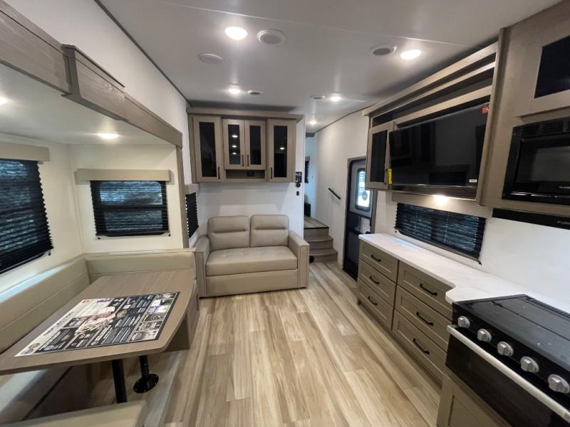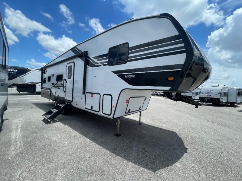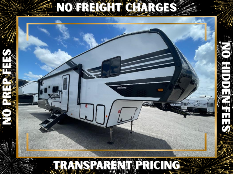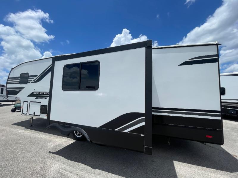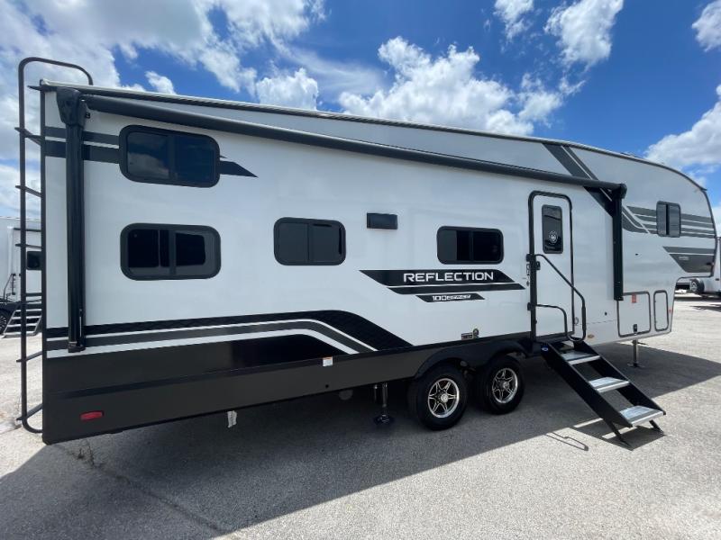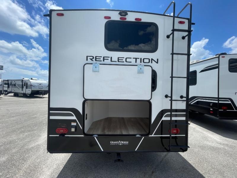 Each Reflection 100 Series fifth wheel by Grand Design is affordable and packed with luxury for unforgettable camping memories! The MorRyde CRE3000 suspension system and Goodyear Endurance tires will provide smooth towing from home to campground. And the solar package with a 180W solar panel, 60 Amp charge controller and 12V refrigerator will allow you to camp for longer periods of time and in more locations! A heated and enclosed underbelly with circulating heat is included in the Arctic 4-Seasons Protection Package, along with a double insulated roof and front cap, and thermofoil insulation under the holding tanks so you can camp all year long if you choose. You will appreciate having an on-demand water heater for hot showers after exploring, and the universal all-in-one docking station will let you monitor your RVs tanks levels and functions with ease. These models also include many luxurious interior features, such as premium Congoleum flooring, pleated shades, residential cabinetry, and matte black fixtures and hardware. Don't let the Reflection 100 Series fifth wheels pass you by!