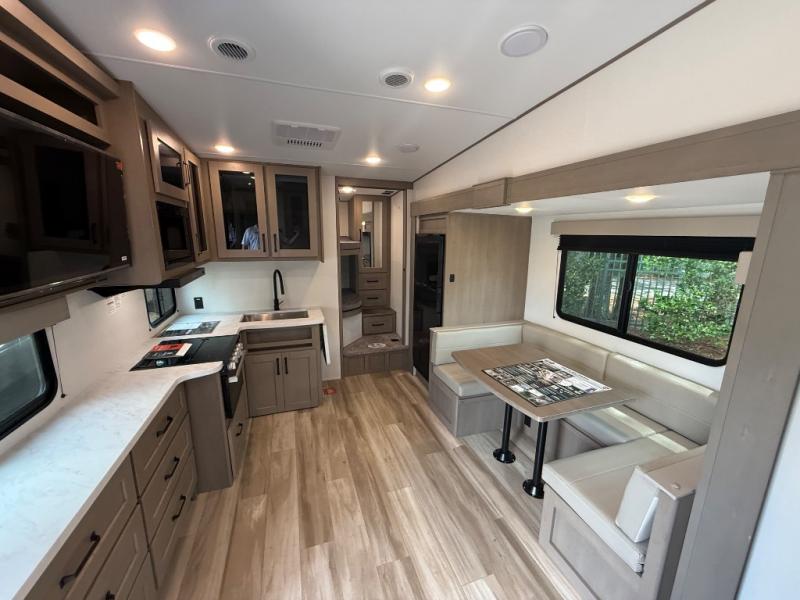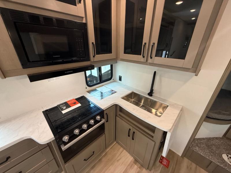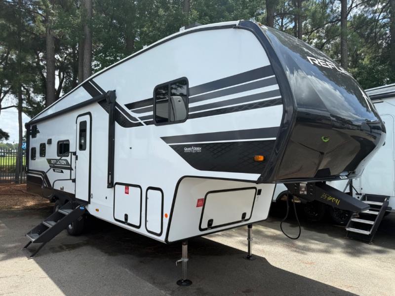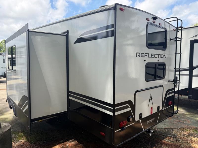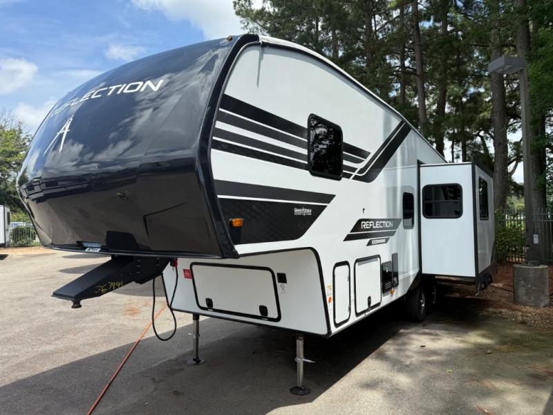 Each Reflection 100 Series fifth wheel by Grand Design is affordable and packed with luxury for unforgettable camping memories! The MorRyde CRE3000 suspension system and Goodyear Endurance tires will provide smooth towing from home to campground. And the solar package with a 180W solar panel, 60 Amp charge controller and 12V refrigerator will allow you to camp for longer periods of time and in more locations! A heated and enclosed underbelly with circulating heat is included in the Arctic 4-Seasons Protection Package, along with a double insulated roof and front cap, and thermofoil insulation under the holding tanks so you can camp all year long if you choose. You will appreciate having an on-demand water heater for hot showers after exploring, and the universal all-in-one docking station will let you monitor your RVs tanks levels and functions with ease. These models also include many luxurious interior features, such as premium Congoleum flooring, pleated shades, residential cabinetry, and matte black fixtures and hardware. Don't let the Reflection 100 Series fifth wheels pass you by!