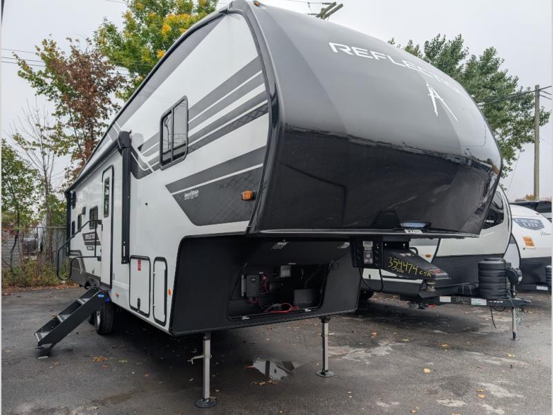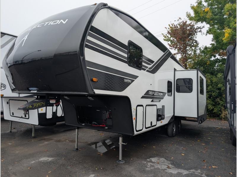 Each Reflection 100 Series fifth wheel by Grand Design is affordable and packed with luxury for unforgettable camping memories! The MorRyde CRE3000 suspension system and Goodyear Endurance tires will provide smooth towing from home to campground. And the solar package with a 180W solar panel, 60 Amp charge controller and 12V refrigerator will allow you to camp for longer periods of time and in more locations! A heated and enclosed underbelly with circulating heat is included in the Arctic 4-Seasons Protection Package, along with a double insulated roof and front cap, and thermofoil insulation under the holding tanks so you can camp all year long if you choose. You will appreciate having an on-demand water heater for hot showers after exploring, and the universal all-in-one docking station will let you monitor your RVs tanks levels and functions with ease. These models also include many luxurious interior features, such as premium Congoleum flooring, pleated shades, residential cabinetry, and matte black fixtures and hardware. Don't let the Reflection 100 Series fifth wheels pass you by!