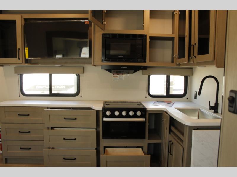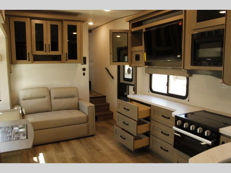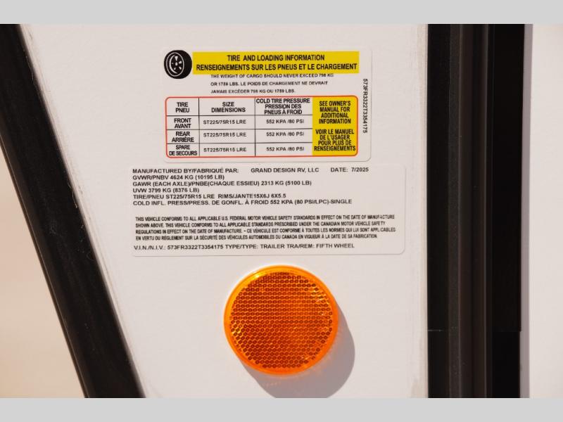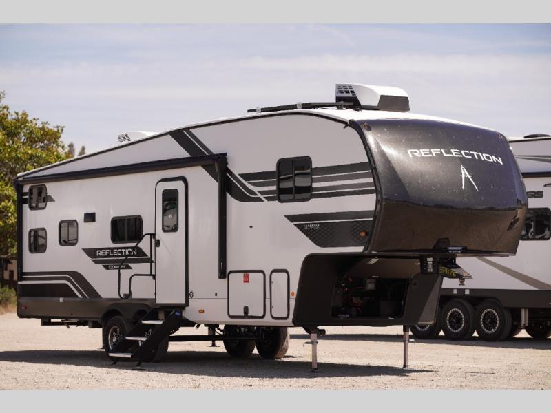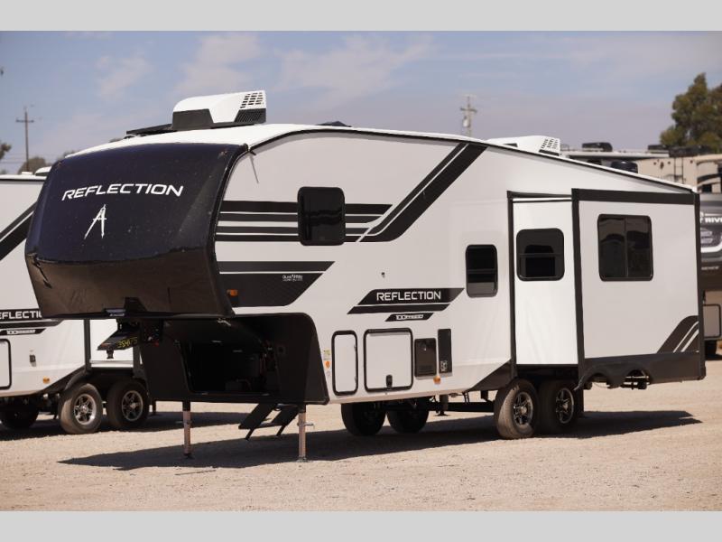 Each Reflection 100 Series fifth wheel by Grand Design is affordable and packed with luxury for unforgettable camping memories! The MorRyde CRE3000 suspension system and Goodyear Endurance tires will provide smooth towing from home to campground. And the solar package with a 180W solar panel, 60 Amp charge controller and 12V refrigerator will allow you to camp for longer periods of time and in more locations! A heated and enclosed underbelly with circulating heat is included in the Arctic 4-Seasons Protection Package, along with a double insulated roof and front cap, and thermofoil insulation under the holding tanks so you can camp all year long if you choose. You will appreciate having an on-demand water heater for hot showers after exploring, and the universal all-in-one docking station will let you monitor your RVs tanks levels and functions with ease. These models also include many luxurious interior features, such as premium Congoleum flooring, pleated shades, residential cabinetry, and matte black fixtures and hardware. Don't let the Reflection 100 Series fifth wheels pass you by!