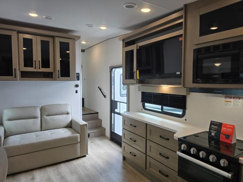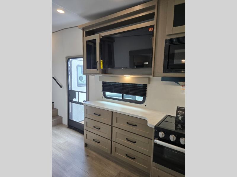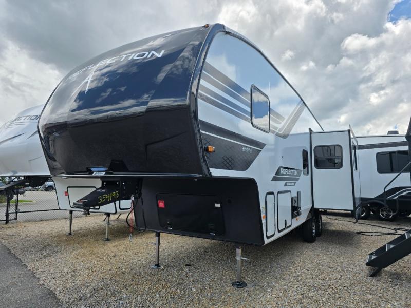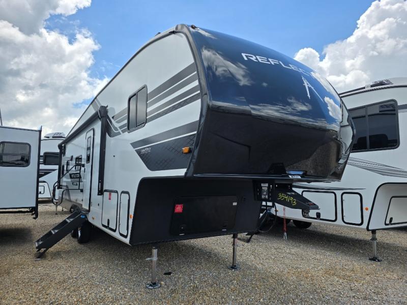 Each Reflection 100 Series fifth wheel by Grand Design is affordable and packed with luxury for unforgettable camping memories! The MorRyde CRE3000 suspension system and Goodyear Endurance tires will provide smooth towing from home to campground. And the solar package with a 180W solar panel, 60 Amp charge controller and 12V refrigerator will allow you to camp for longer periods of time and in more locations! A heated and enclosed underbelly with circulating heat is included in the Arctic 4-Seasons Protection Package, along with a double insulated roof and front cap, and thermofoil insulation under the holding tanks so you can camp all year long if you choose. You will appreciate having an on-demand water heater for hot showers after exploring, and the universal all-in-one docking station will let you monitor your RVs tanks levels and functions with ease. These models also include many luxurious interior features, such as premium Congoleum flooring, pleated shades, residential cabinetry, and matte black fixtures and hardware. Don't let the Reflection 100 Series fifth wheels pass you by!