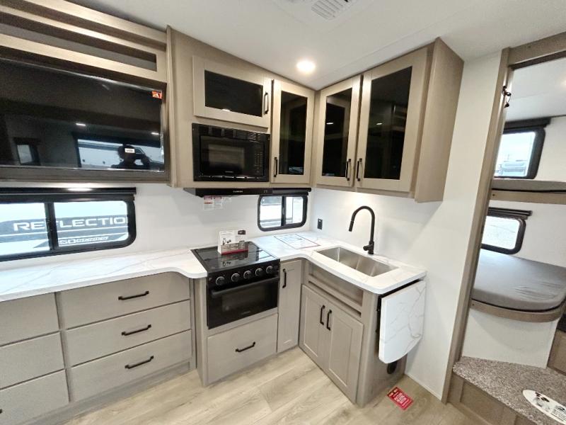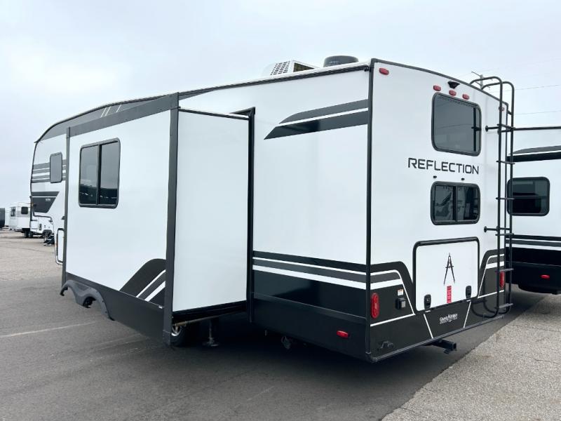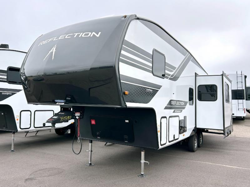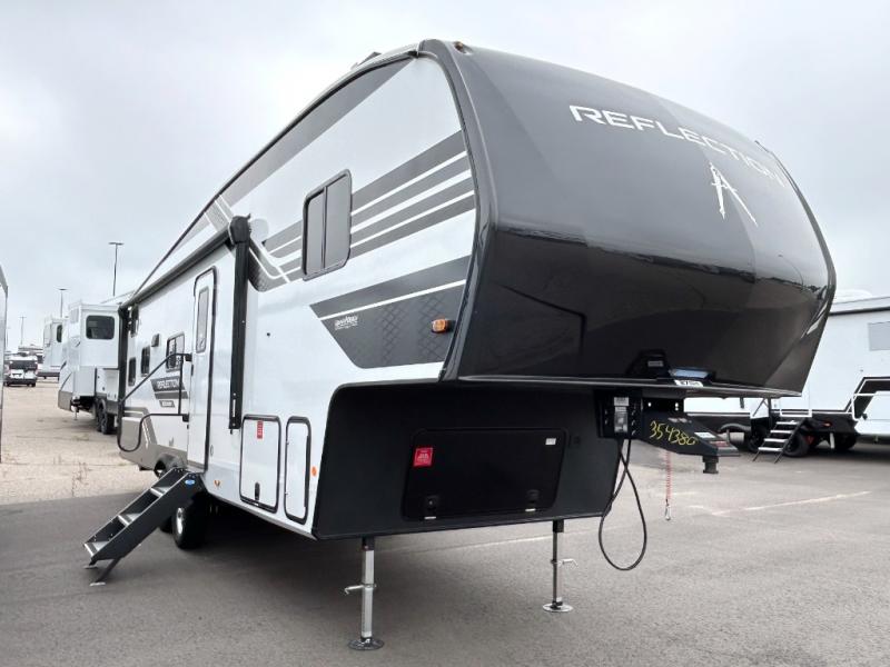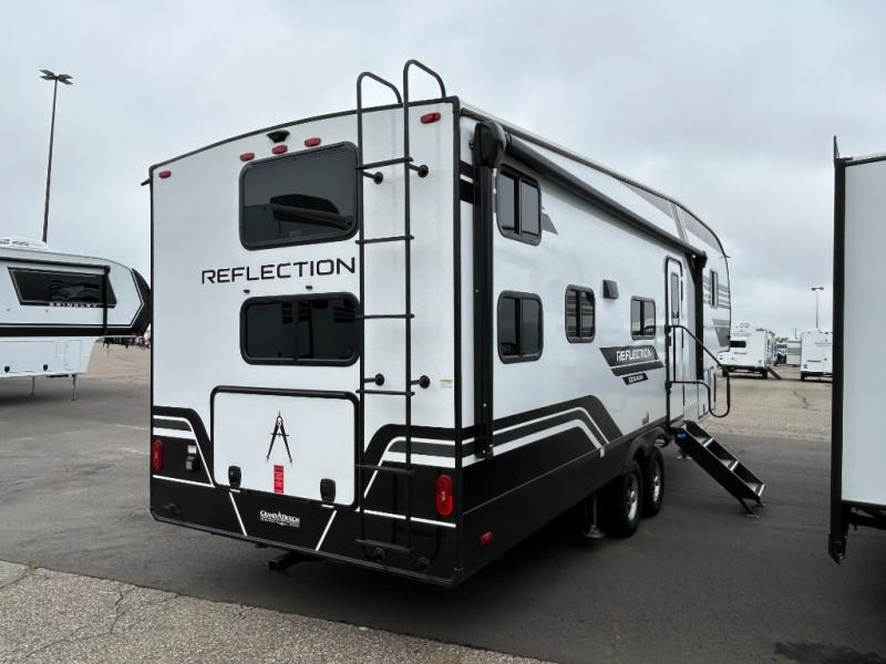 Each Reflection 100 Series fifth wheel by Grand Design is affordable and packed with luxury for unforgettable camping memories! The MorRyde CRE3000 suspension system and Goodyear Endurance tires will provide smooth towing from home to campground. And the solar package with a 180W solar panel, 60 Amp charge controller and 12V refrigerator will allow you to camp for longer periods of time and in more locations! A heated and enclosed underbelly with circulating heat is included in the Arctic 4-Seasons Protection Package, along with a double insulated roof and front cap, and thermofoil insulation under the holding tanks so you can camp all year long if you choose. You will appreciate having an on-demand water heater for hot showers after exploring, and the universal all-in-one docking station will let you monitor your RVs tanks levels and functions with ease. These models also include many luxurious interior features, such as premium Congoleum flooring, pleated shades, residential cabinetry, and matte black fixtures and hardware. Don't let the Reflection 100 Series fifth wheels pass you by!