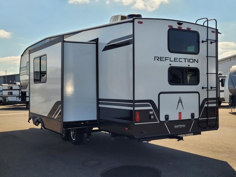 Each Reflection 100 Series fifth wheel by Grand Design is affordable and packed with luxury for unforgettable camping memories! The MorRyde CRE3000 suspension system and Goodyear Endurance tires will provide smooth towing from home to campground. And the solar package with a 180W solar panel, 60 Amp charge controller and 12V refrigerator will allow you to camp for longer periods of time and in more locations! A heated and enclosed underbelly with circulating heat is included in the Arctic 4-Seasons Protection Package, along with a double insulated roof and front cap, and thermofoil insulation under the holding tanks so you can camp all year long if you choose. You will appreciate having an on-demand water heater for hot showers after exploring, and the universal all-in-one docking station will let you monitor your RVs tanks levels and functions with ease. These models also include many luxurious interior features, such as premium Congoleum flooring, pleated shades, residential cabinetry, and matte black fixtures and hardware. Don't let the Reflection 100 Series fifth wheels pass you by!