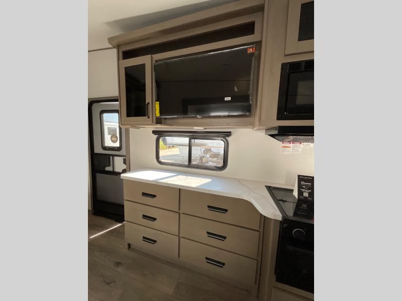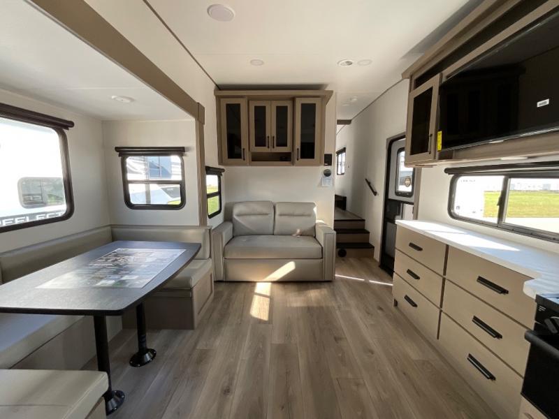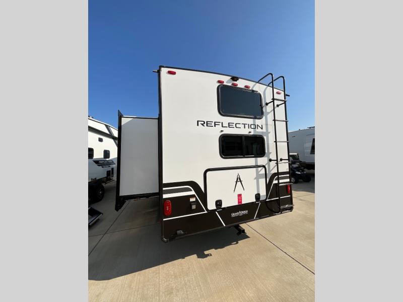 Each Reflection 100 Series fifth wheel by Grand Design is affordable and packed with luxury for unforgettable camping memories! The MorRyde CRE3000 suspension system and Goodyear Endurance tires will provide smooth towing from home to campground. And the solar package with a 180W solar panel, 60 Amp charge controller and 12V refrigerator will allow you to camp for longer periods of time and in more locations! A heated and enclosed underbelly with circulating heat is included in the Arctic 4-Seasons Protection Package, along with a double insulated roof and front cap, and thermofoil insulation under the holding tanks so you can camp all year long if you choose. You will appreciate having an on-demand water heater for hot showers after exploring, and the universal all-in-one docking station will let you monitor your RVs tanks levels and functions with ease. These models also include many luxurious interior features, such as premium Congoleum flooring, pleated shades, residential cabinetry, and matte black fixtures and hardware. Don't let the Reflection 100 Series fifth wheels pass you by!