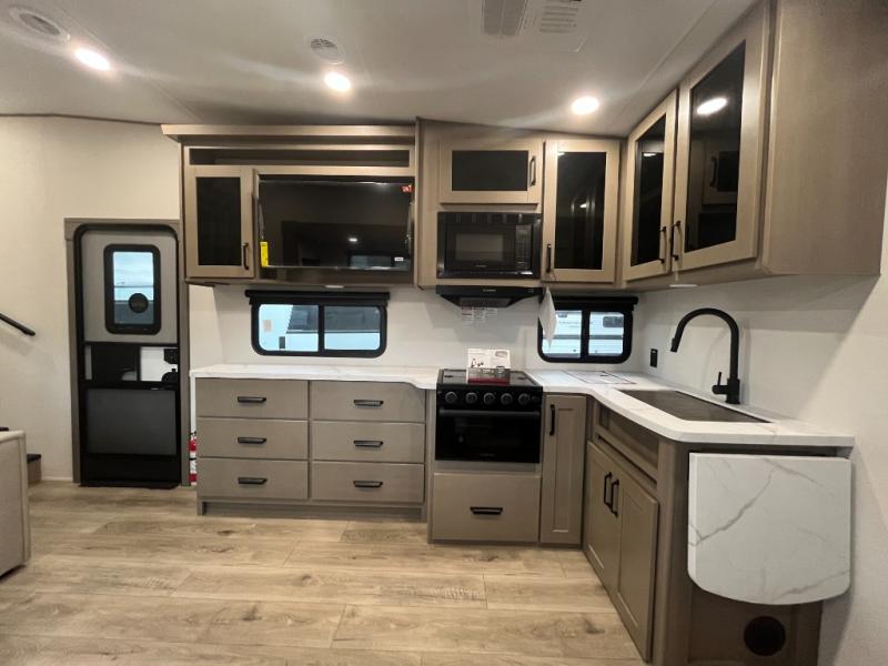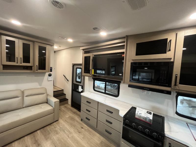 Each Reflection 100 Series fifth wheel by Grand Design is affordable and packed with luxury for unforgettable camping memories! The MorRyde CRE3000 suspension system and Goodyear Endurance tires will provide smooth towing from home to campground. And the solar package with a 180W solar panel, 60 Amp charge controller and 12V refrigerator will allow you to camp for longer periods of time and in more locations! A heated and enclosed underbelly with circulating heat is included in the Arctic 4-Seasons Protection Package, along with a double insulated roof and front cap, and thermofoil insulation under the holding tanks so you can camp all year long if you choose. You will appreciate having an on-demand water heater for hot showers after exploring, and the universal all-in-one docking station will let you monitor your RVs tanks levels and functions with ease. These models also include many luxurious interior features, such as premium Congoleum flooring, pleated shades, residential cabinetry, and matte black fixtures and hardware. Don't let the Reflection 100 Series fifth wheels pass you by!
