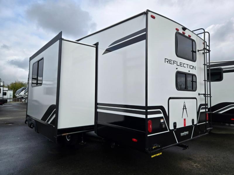 Each Reflection 100 Series fifth wheel by Grand Design is affordable and packed with luxury for unforgettable camping memories! The MorRyde CRE3000 suspension system and Goodyear Endurance tires will provide smooth towing from home to campground. And the solar package with a 180W solar panel, 60 Amp charge controller and 12V refrigerator will allow you to camp for longer periods of time and in more locations! A heated and enclosed underbelly with circulating heat is included in the Arctic 4-Seasons Protection Package, along with a double insulated roof and front cap, and thermofoil insulation under the holding tanks so you can camp all year long if you choose. You will appreciate having an on-demand water heater for hot showers after exploring, and the universal all-in-one docking station will let you monitor your RVs tanks levels and functions with ease. These models also include many luxurious interior features, such as premium Congoleum flooring, pleated shades, residential cabinetry, and matte black fixtures and hardware. Don't let the Reflection 100 Series fifth wheels pass you by!