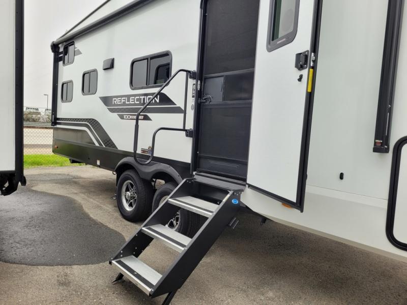 Each Reflection 100 Series fifth wheel by Grand Design is affordable and packed with luxury for unforgettable camping memories! The MorRyde CRE3000 suspension system and Goodyear Endurance tires will provide smooth towing from home to campground. And the solar package with a 180W solar panel, 60 Amp charge controller and 12V refrigerator will allow you to camp for longer periods of time and in more locations! A heated and enclosed underbelly with circulating heat is included in the Arctic 4-Seasons Protection Package, along with a double insulated roof and front cap, and thermofoil insulation under the holding tanks so you can camp all year long if you choose. You will appreciate having an on-demand water heater for hot showers after exploring, and the universal all-in-one docking station will let you monitor your RVs tanks levels and functions with ease. These models also include many luxurious interior features, such as premium Congoleum flooring, pleated shades, residential cabinetry, and matte black fixtures and hardware. Don't let the Reflection 100 Series fifth wheels pass you by!