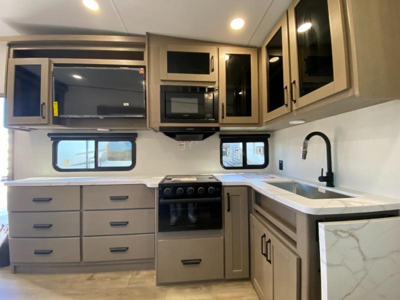 Each Reflection 100 Series fifth wheel by Grand Design is affordable and packed with luxury for unforgettable camping memories! The MorRyde CRE3000 suspension system and Goodyear Endurance tires will provide smooth towing from home to campground. And the solar package with a 180W solar panel, 60 Amp charge controller and 12V refrigerator will allow you to camp for longer periods of time and in more locations! A heated and enclosed underbelly with circulating heat is included in the Arctic 4-Seasons Protection Package, along with a double insulated roof and front cap, and thermofoil insulation under the holding tanks so you can camp all year long if you choose. You will appreciate having an on-demand water heater for hot showers after exploring, and the universal all-in-one docking station will let you monitor your RVs tanks levels and functions with ease. These models also include many luxurious interior features, such as premium Congoleum flooring, pleated shades, residential cabinetry, and matte black fixtures and hardware. Don't let the Reflection 100 Series fifth wheels pass you by!