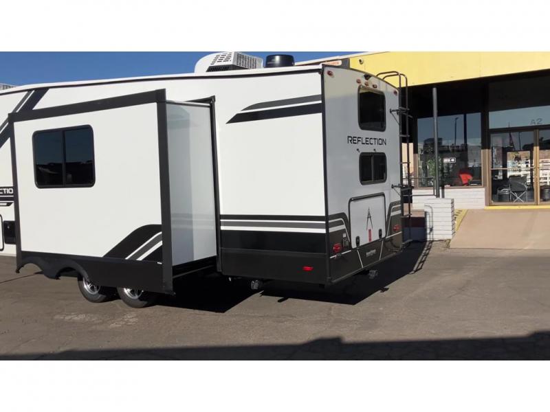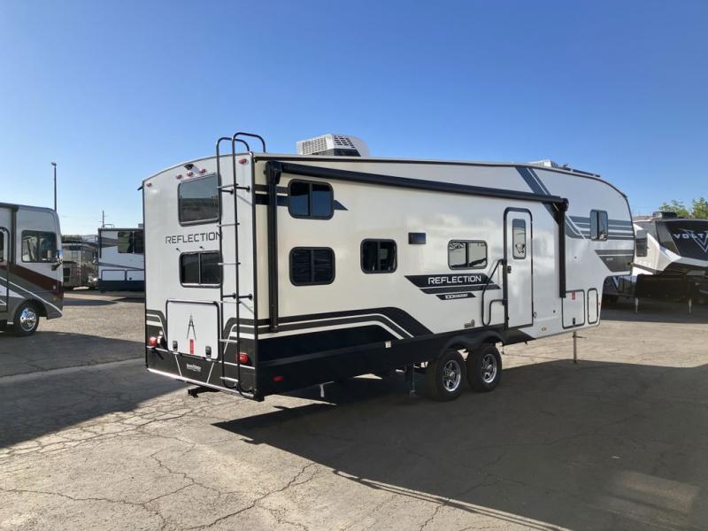 Each Reflection 100 Series fifth wheel by Grand Design is affordable and packed with luxury for unforgettable camping memories! The MorRyde CRE3000 suspension system and Goodyear Endurance tires will provide smooth towing from home to campground. And the solar package with a 180W solar panel, 60 Amp charge controller and 12V refrigerator will allow you to camp for longer periods of time and in more locations! A heated and enclosed underbelly with circulating heat is included in the Arctic 4-Seasons Protection Package, along with a double insulated roof and front cap, and thermofoil insulation under the holding tanks so you can camp all year long if you choose. You will appreciate having an on-demand water heater for hot showers after exploring, and the universal all-in-one docking station will let you monitor your RVs tanks levels and functions with ease. These models also include many luxurious interior features, such as premium Congoleum flooring, pleated shades, residential cabinetry, and matte black fixtures and hardware. Don't let the Reflection 100 Series fifth wheels pass you by!