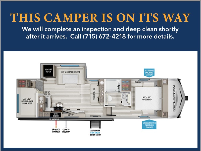 Each Reflection 100 Series fifth wheel by Grand Design is affordable and packed with luxury for unforgettable camping memories! The MorRyde CRE3000 suspension system and Goodyear Endurance tires will provide smooth towing from home to campground. And the solar package with a 180W solar panel, 60 Amp charge controller and 12V refrigerator will allow you to camp for longer periods of time and in more locations! A heated and enclosed underbelly with circulating heat is included in the Arctic 4-Seasons Protection Package, along with a double insulated roof and front cap, and thermofoil insulation under the holding tanks so you can camp all year long if you choose. You will appreciate having an on-demand water heater for hot showers after exploring, and the universal all-in-one docking station will let you monitor your RVs tanks levels and functions with ease. These models also include many luxurious interior features, such as premium Congoleum flooring, pleated shades, residential cabinetry, and matte black fixtures and hardware. Don't let the Reflection 100 Series fifth wheels pass you by!