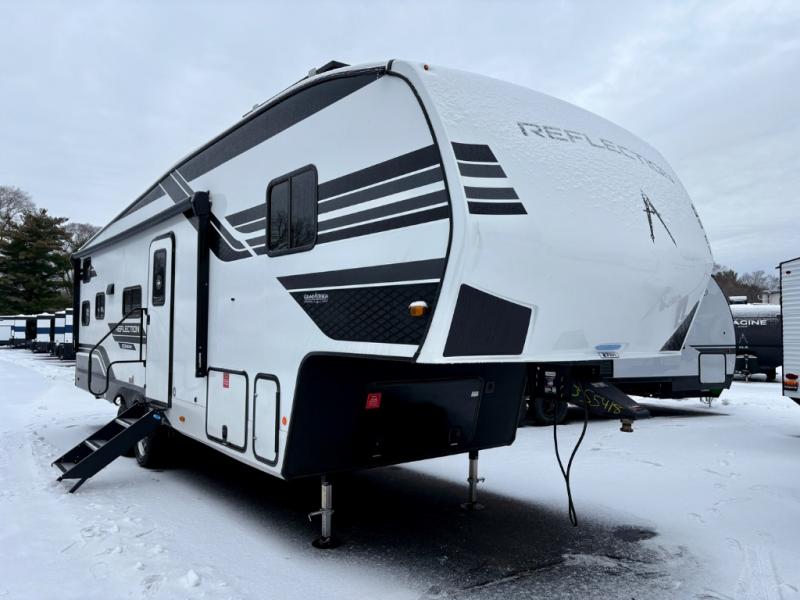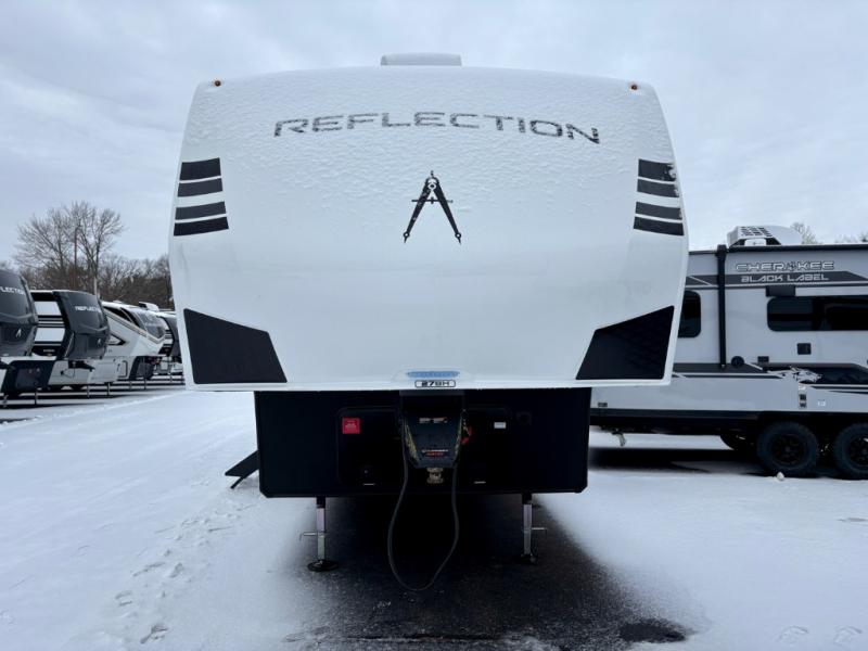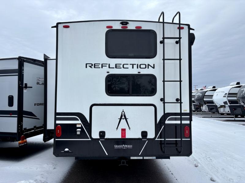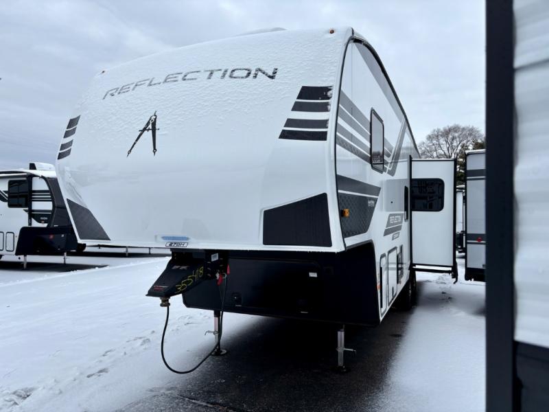 Each Reflection 100 Series fifth wheel by Grand Design is affordable and packed with luxury for unforgettable camping memories! The MorRyde CRE3000 suspension system and Goodyear Endurance tires will provide smooth towing from home to campground. And the solar package with a 180W solar panel, 60 Amp charge controller and 12V refrigerator will allow you to camp for longer periods of time and in more locations! A heated and enclosed underbelly with circulating heat is included in the Arctic 4-Seasons Protection Package, along with a double insulated roof and front cap, and thermofoil insulation under the holding tanks so you can camp all year long if you choose. You will appreciate having an on-demand water heater for hot showers after exploring, and the universal all-in-one docking station will let you monitor your RVs tanks levels and functions with ease. These models also include many luxurious interior features, such as premium Congoleum flooring, pleated shades, residential cabinetry, and matte black fixtures and hardware. Don't let the Reflection 100 Series fifth wheels pass you by!