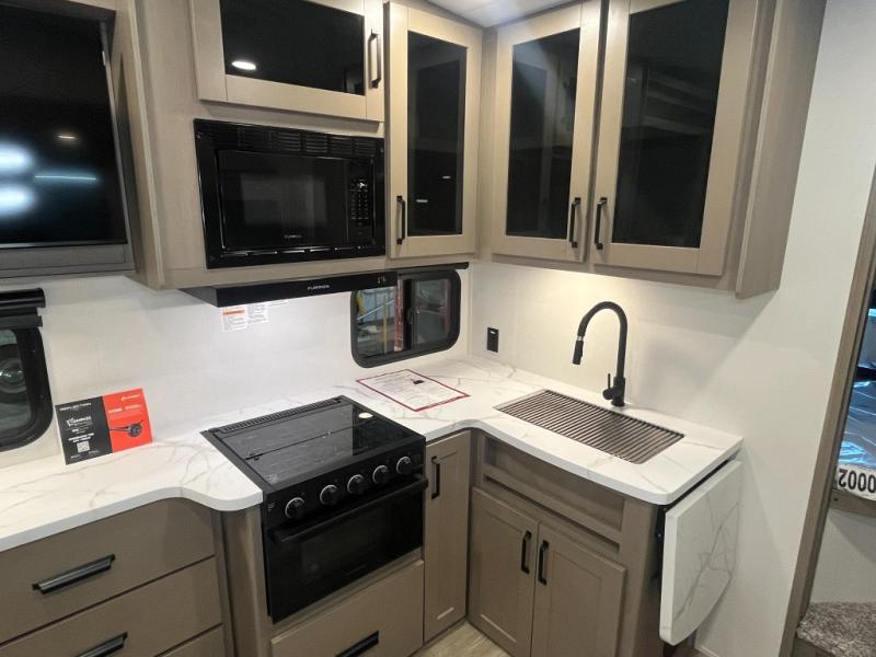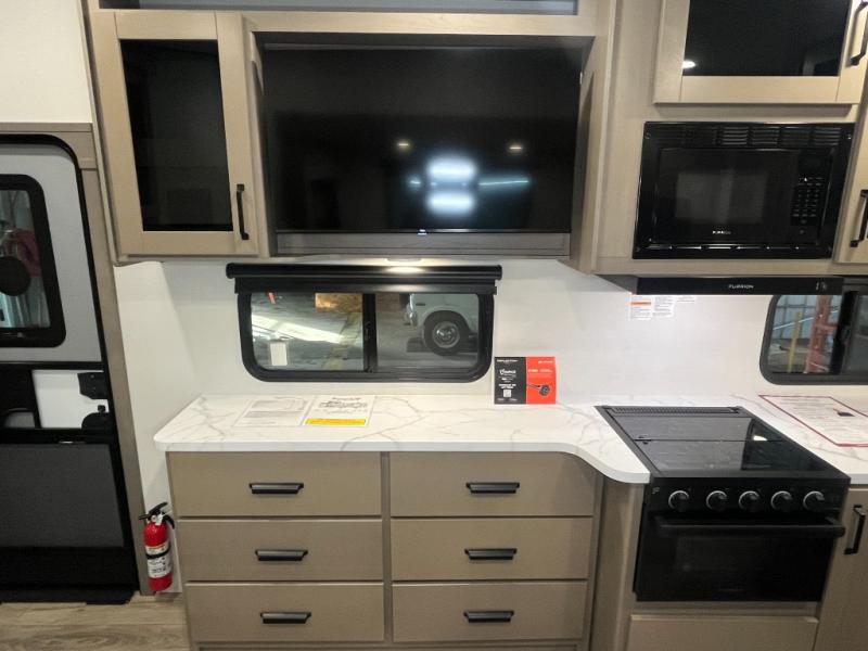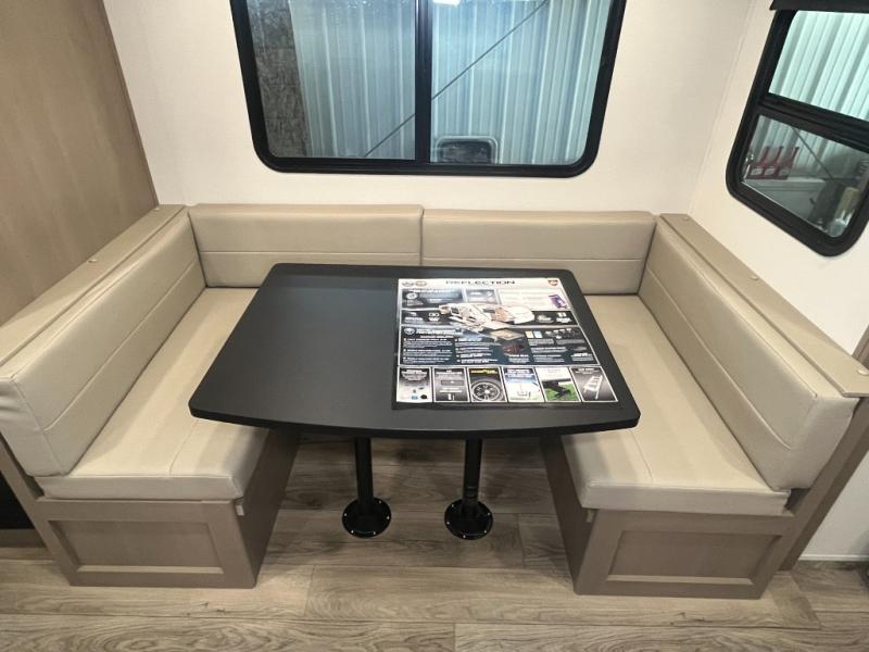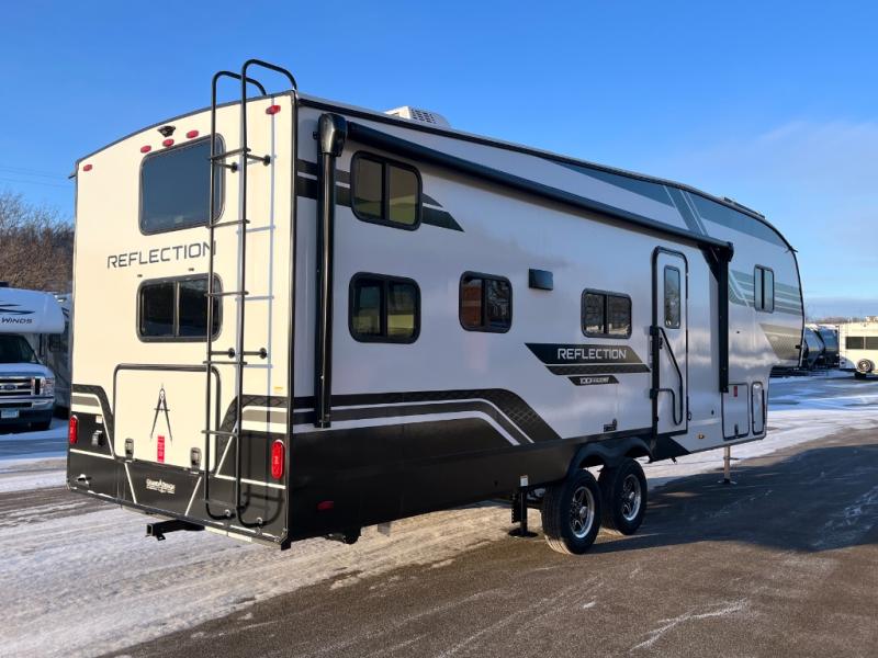 Each Reflection 100 Series fifth wheel by Grand Design is affordable and packed with luxury for unforgettable camping memories! The MorRyde CRE3000 suspension system and Goodyear Endurance tires will provide smooth towing from home to campground. And the solar package with a 180W solar panel, 60 Amp charge controller and 12V refrigerator will allow you to camp for longer periods of time and in more locations! A heated and enclosed underbelly with circulating heat is included in the Arctic 4-Seasons Protection Package, along with a double insulated roof and front cap, and thermofoil insulation under the holding tanks so you can camp all year long if you choose. You will appreciate having an on-demand water heater for hot showers after exploring, and the universal all-in-one docking station will let you monitor your RVs tanks levels and functions with ease. These models also include many luxurious interior features, such as premium Congoleum flooring, pleated shades, residential cabinetry, and matte black fixtures and hardware. Don't let the Reflection 100 Series fifth wheels pass you by!