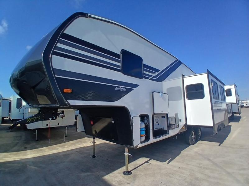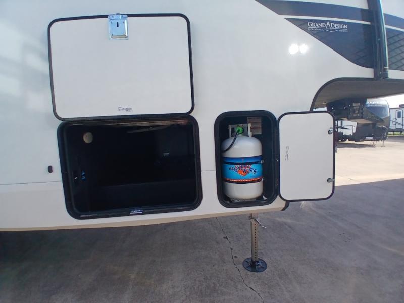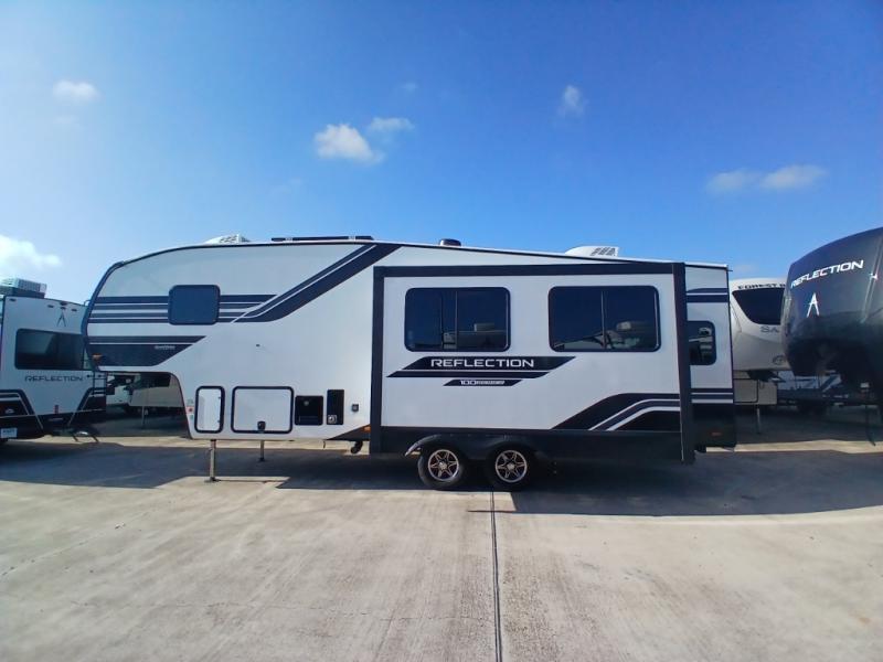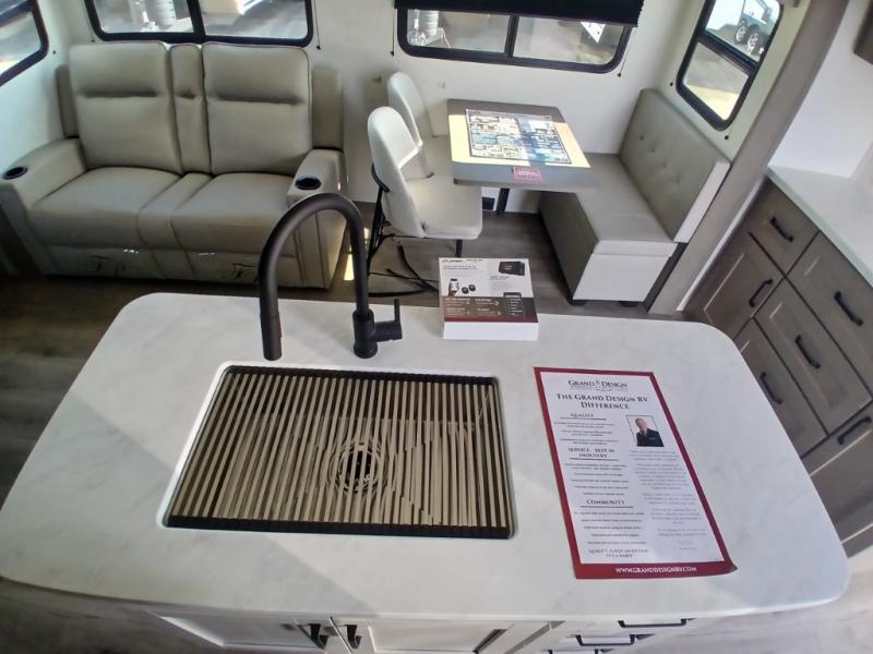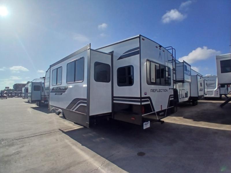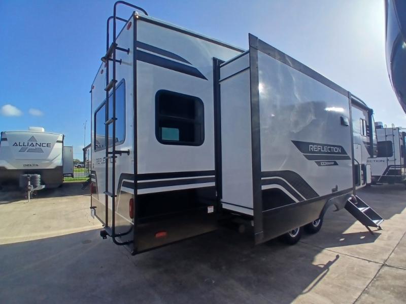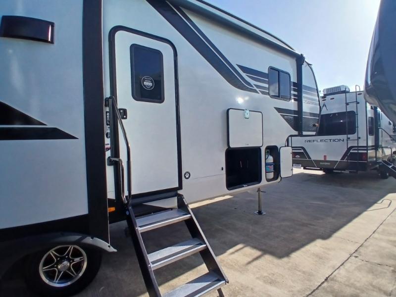 Each Reflection 100 Series fifth wheel by Grand Design is affordable and packed with luxury for unforgettable camping memories! The MorRyde CRE3000 suspension system and Goodyear Endurance tires will provide smooth towing from home to campground. And the solar package with a 180W solar panel, 60 Amp charge controller and 12V refrigerator will allow you to camp for longer periods of time and in more locations! A heated and enclosed underbelly with circulating heat is included in the Arctic 4-Seasons Protection Package, along with a double insulated roof and front cap, and thermofoil insulation under the holding tanks so you can camp all year long if you choose. You will appreciate having an on-demand water heater for hot showers after exploring, and the universal all-in-one docking station will let you monitor your RVs tanks levels and functions with ease. These models also include many luxurious interior features, such as premium Congoleum flooring, pleated shades, residential cabinetry, and matte black fixtures and hardware. Don't let the Reflection 100 Series fifth wheels pass you by!