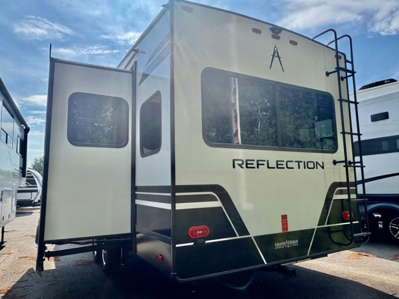 Each Reflection 100 Series fifth wheel by Grand Design is affordable and packed with luxury for unforgettable camping memories! The MorRyde CRE3000 suspension system and Goodyear Endurance tires will provide smooth towing from home to campground. And the solar package with a 180W solar panel, 60 Amp charge controller and 12V refrigerator will allow you to camp for longer periods of time and in more locations! A heated and enclosed underbelly with circulating heat is included in the Arctic 4-Seasons Protection Package, along with a double insulated roof and front cap, and thermofoil insulation under the holding tanks so you can camp all year long if you choose. You will appreciate having an on-demand water heater for hot showers after exploring, and the universal all-in-one docking station will let you monitor your RVs tanks levels and functions with ease. These models also include many luxurious interior features, such as premium Congoleum flooring, pleated shades, residential cabinetry, and matte black fixtures and hardware. Don't let the Reflection 100 Series fifth wheels pass you by!