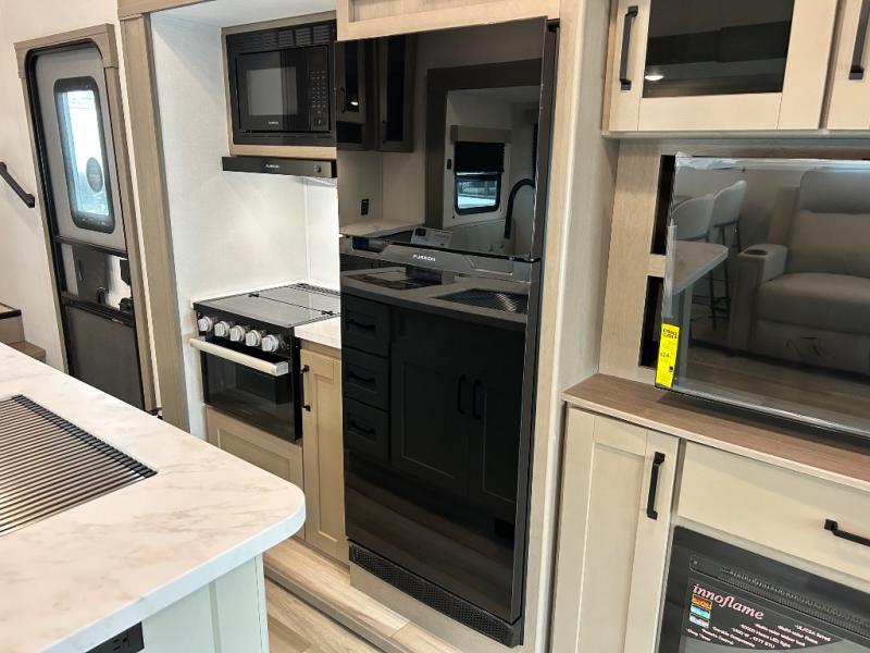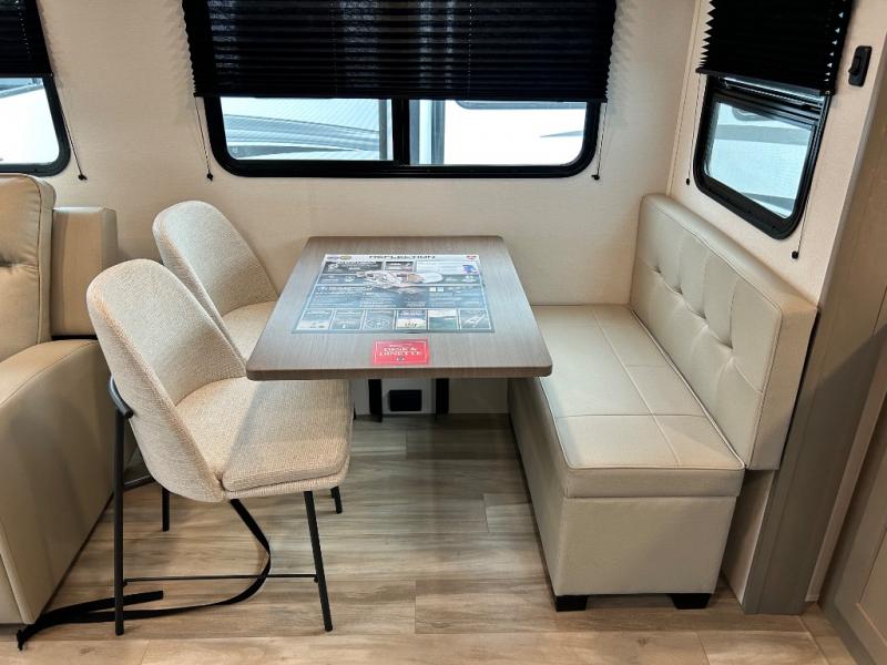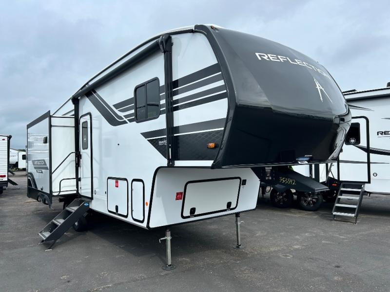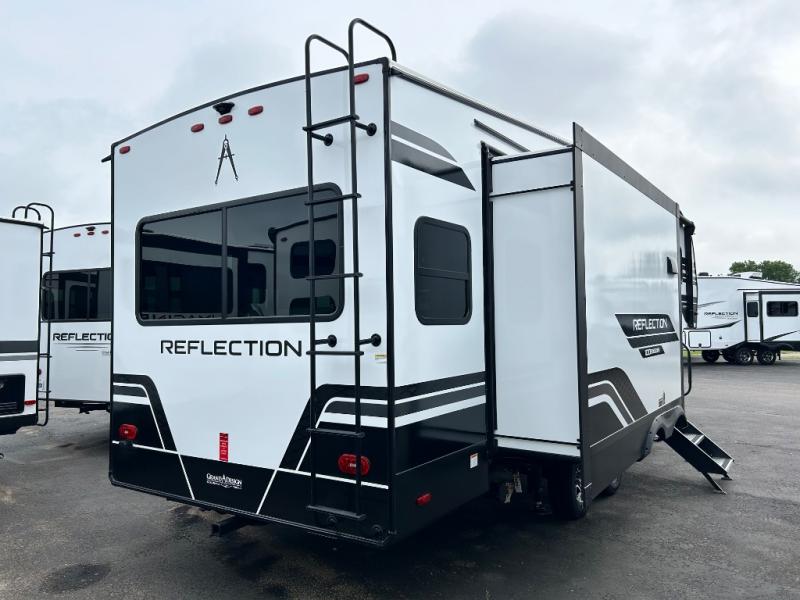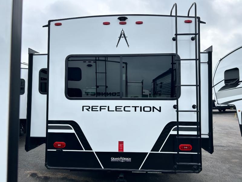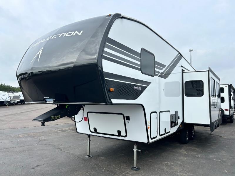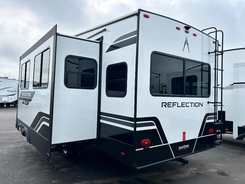 Each Reflection 100 Series fifth wheel by Grand Design is affordable and packed with luxury for unforgettable camping memories! The MorRyde CRE3000 suspension system and Goodyear Endurance tires will provide smooth towing from home to campground. And the solar package with a 180W solar panel, 60 Amp charge controller and 12V refrigerator will allow you to camp for longer periods of time and in more locations! A heated and enclosed underbelly with circulating heat is included in the Arctic 4-Seasons Protection Package, along with a double insulated roof and front cap, and thermofoil insulation under the holding tanks so you can camp all year long if you choose. You will appreciate having an on-demand water heater for hot showers after exploring, and the universal all-in-one docking station will let you monitor your RVs tanks levels and functions with ease. These models also include many luxurious interior features, such as premium Congoleum flooring, pleated shades, residential cabinetry, and matte black fixtures and hardware. Don't let the Reflection 100 Series fifth wheels pass you by!