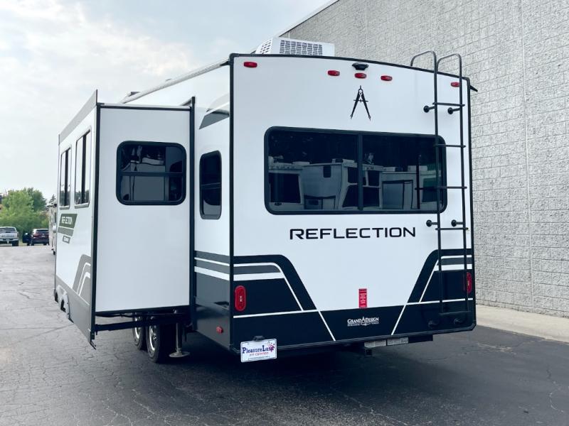Each Reflection 100 Series fifth wheel by Grand Design is affordable and packed with luxury for unforgettable camping memories! The MorRyde CRE3000 suspension system and Goodyear Endurance tires will provide smooth towing from home to campground. And the solar package with a 180W solar panel, 60 Amp charge controller and 12V refrigerator will allow you to camp for longer periods of time and in more locations! A heated and enclosed underbelly with circulating heat is included in the Arctic 4-Seasons Protection Package, along with a double insulated roof and front cap, and thermofoil insulation under the holding tanks so you can camp all year long if you choose. You will appreciate having an on-demand water heater for hot showers after exploring, and the universal all-in-one docking station will let you monitor your RVs tanks levels and functions with ease. These models also include many luxurious interior features, such as premium Congoleum flooring, pleated shades, residential cabinetry, and matte black fixtures and hardware. Don't let the Reflection 100 Series fifth wheels pass you by!