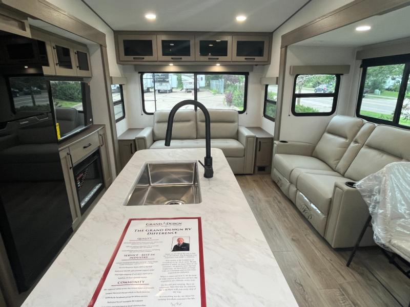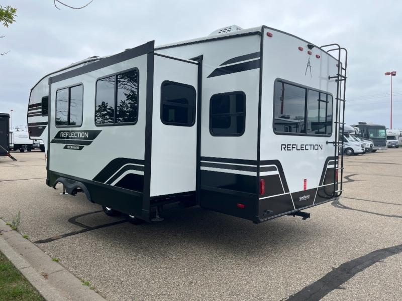 Each Reflection 100 Series fifth wheel by Grand Design is affordable and packed with luxury for unforgettable camping memories! The MorRyde CRE3000 suspension system and Goodyear Endurance tires will provide smooth towing from home to campground. And the solar package with a 180W solar panel, 60 Amp charge controller and 12V refrigerator will allow you to camp for longer periods of time and in more locations! A heated and enclosed underbelly with circulating heat is included in the Arctic 4-Seasons Protection Package, along with a double insulated roof and front cap, and thermofoil insulation under the holding tanks so you can camp all year long if you choose. You will appreciate having an on-demand water heater for hot showers after exploring, and the universal all-in-one docking station will let you monitor your RVs tanks levels and functions with ease. These models also include many luxurious interior features, such as premium Congoleum flooring, pleated shades, residential cabinetry, and matte black fixtures and hardware. Don't let the Reflection 100 Series fifth wheels pass you by!