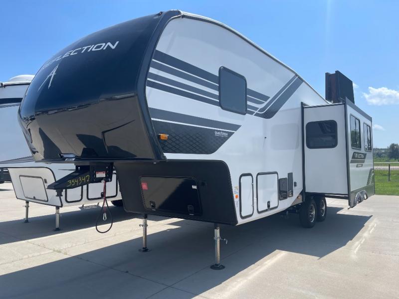 Each Reflection 100 Series fifth wheel by Grand Design is affordable and packed with luxury for unforgettable camping memories! The MorRyde CRE3000 suspension system and Goodyear Endurance tires will provide smooth towing from home to campground. And the solar package with a 180W solar panel, 60 Amp charge controller and 12V refrigerator will allow you to camp for longer periods of time and in more locations! A heated and enclosed underbelly with circulating heat is included in the Arctic 4-Seasons Protection Package, along with a double insulated roof and front cap, and thermofoil insulation under the holding tanks so you can camp all year long if you choose. You will appreciate having an on-demand water heater for hot showers after exploring, and the universal all-in-one docking station will let you monitor your RVs tanks levels and functions with ease. These models also include many luxurious interior features, such as premium Congoleum flooring, pleated shades, residential cabinetry, and matte black fixtures and hardware. Don't let the Reflection 100 Series fifth wheels pass you by!