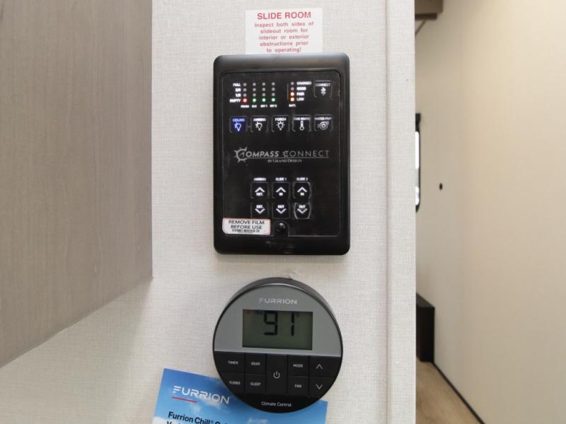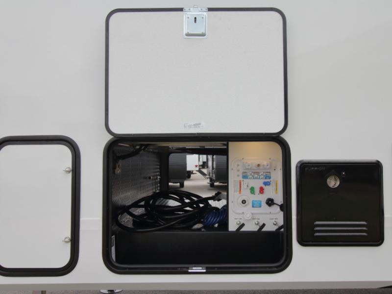 Outdoor Living – Relax under the 13' “One Touch” electric awning and load up gear in the unobstructed pass-through storage compartment.