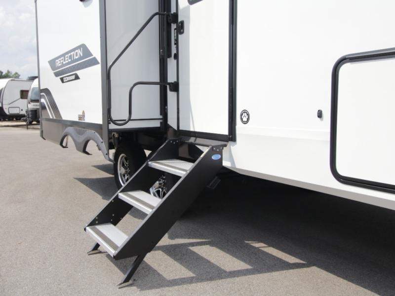 Every Reflection 100 Series fifth wheel is engineered for smooth towing and lasting durability. Equipped with a MorRyde CRE3000 suspension system and Goodyear Endurance tires, you’ll enjoy stability and confidence on the road. The standard solar package—with a 180W panel, 60 Amp charge controller, and 12V refrigerator—lets you extend your adventures off-grid.