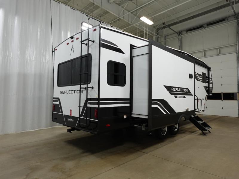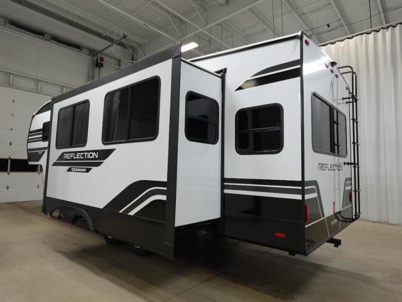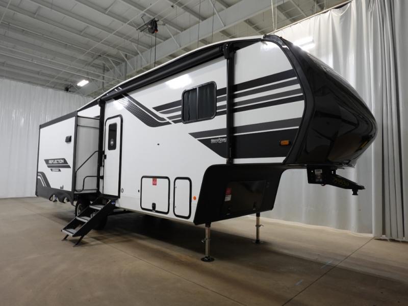 Each Reflection 100 Series fifth wheel by Grand Design is affordable and packed with luxury for unforgettable camping memories! The MorRyde CRE3000 suspension system and Goodyear Endurance tires will provide smooth towing from home to campground. And the solar package with a 180W solar panel, 60 Amp charge controller and 12V refrigerator will allow you to camp for longer periods of time and in more locations! A heated and enclosed underbelly with circulating heat is included in the Arctic 4-Seasons Protection Package, along with a double insulated roof and front cap, and thermofoil insulation under the holding tanks so you can camp all year long if you choose. You will appreciate having an on-demand water heater for hot showers after exploring, and the universal all-in-one docking station will let you monitor your RVs tanks levels and functions with ease. These models also include many luxurious interior features, such as premium Congoleum flooring, pleated shades, residential cabinetry, and matte black fixtures and hardware. Don't let the Reflection 100 Series fifth wheels pass you by!