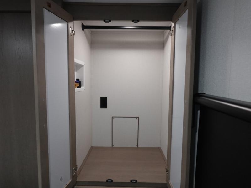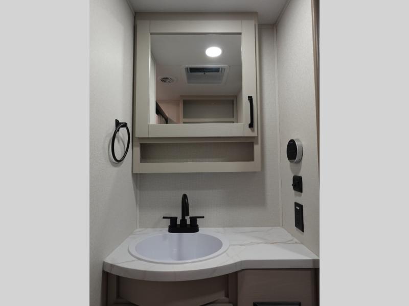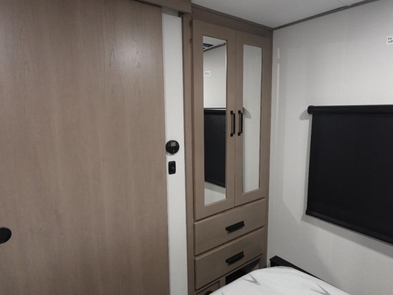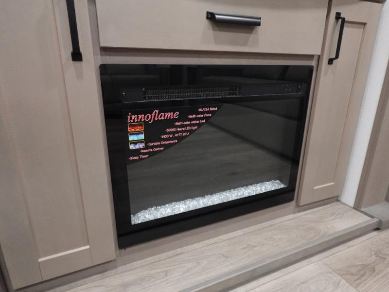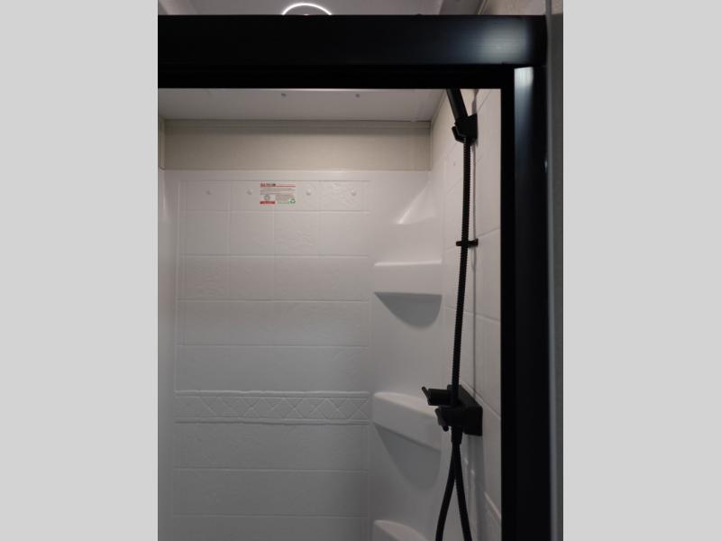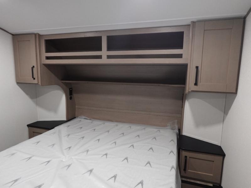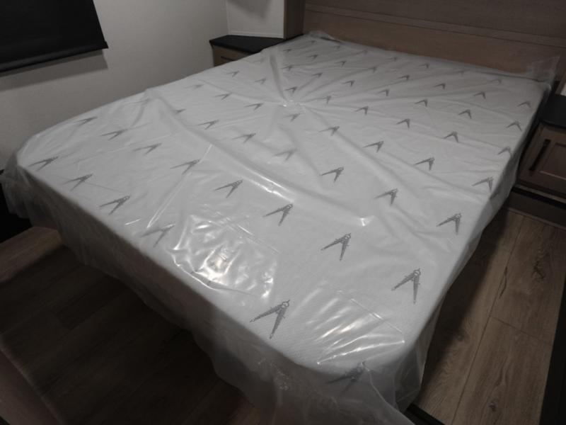 You'll love the amount of space you have in this fifth wheel thanks to the dual opposing slides in the rear living area/kitchen. Your friends and family can relax on the tri-fold sofa or theater seating across from the high-definition 40" LED TV. The chef of your group will appreciate having a kitchen island that will provide more counter space, plus there is a hutch with overhead cabinets for nice dishes. A full bath onboard lets you clean up each day and the front private bedroom includes a queen bed just like at home. You'll also love spending time outdoors under the electric awning, and there is an unobstructed pass-thru storage for fishing poles, hiking gear, and camp chairs!