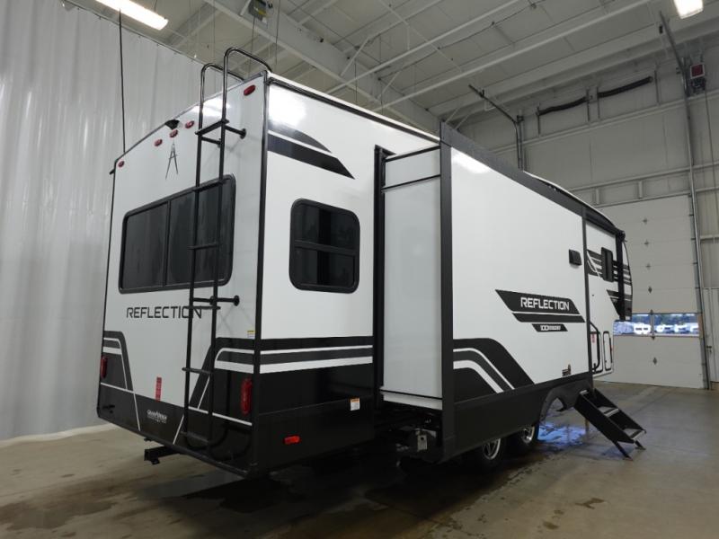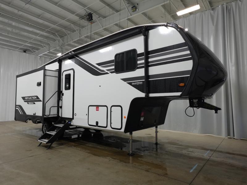 Each Reflection 100 Series fifth wheel by Grand Design is affordable and packed with luxury for unforgettable camping memories! The MorRyde CRE3000 suspension system and Goodyear Endurance tires will provide smooth towing from home to campground. And the solar package with a 180W solar panel, 60 Amp charge controller and 12V refrigerator will allow you to camp for longer periods of time and in more locations! A heated and enclosed underbelly with circulating heat is included in the Arctic 4-Seasons Protection Package, along with a double insulated roof and front cap, and thermofoil insulation under the holding tanks so you can camp all year long if you choose. You will appreciate having an on-demand water heater for hot showers after exploring, and the universal all-in-one docking station will let you monitor your RVs tanks levels and functions with ease. These models also include many luxurious interior features, such as premium Congoleum flooring, pleated shades, residential cabinetry, and matte black fixtures and hardware. Don't let the Reflection 100 Series fifth wheels pass you by!