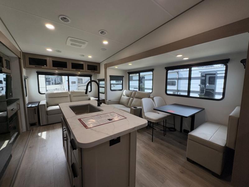 The Grand Design Reflection 100 Series 28RL fifth wheel combines luxury, convenience, and superior towing performance. With dual opposing slides, a theater seating area, optional swivel dinette, kitchen island, and full bath, this unit provides all the comforts of home. Features like the 8k ducted 2nd A/C, ABS axle assembly with sway control, and solar package make it perfect for extended adventures in any season.