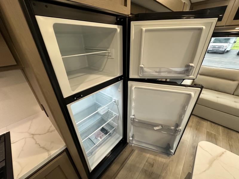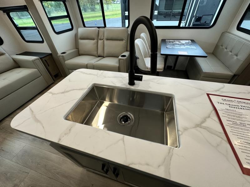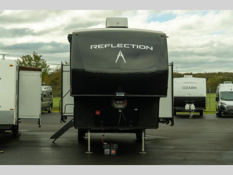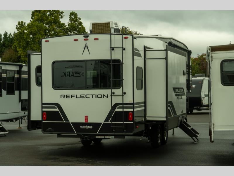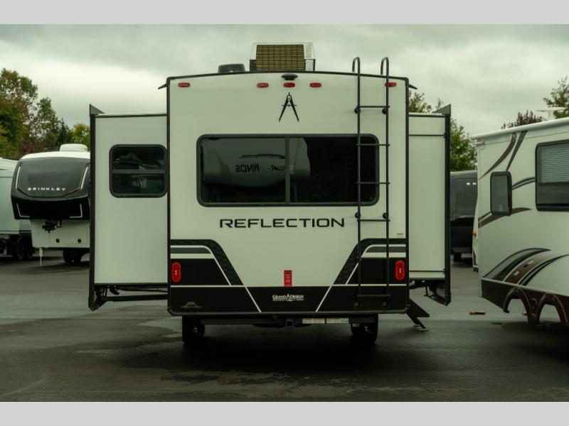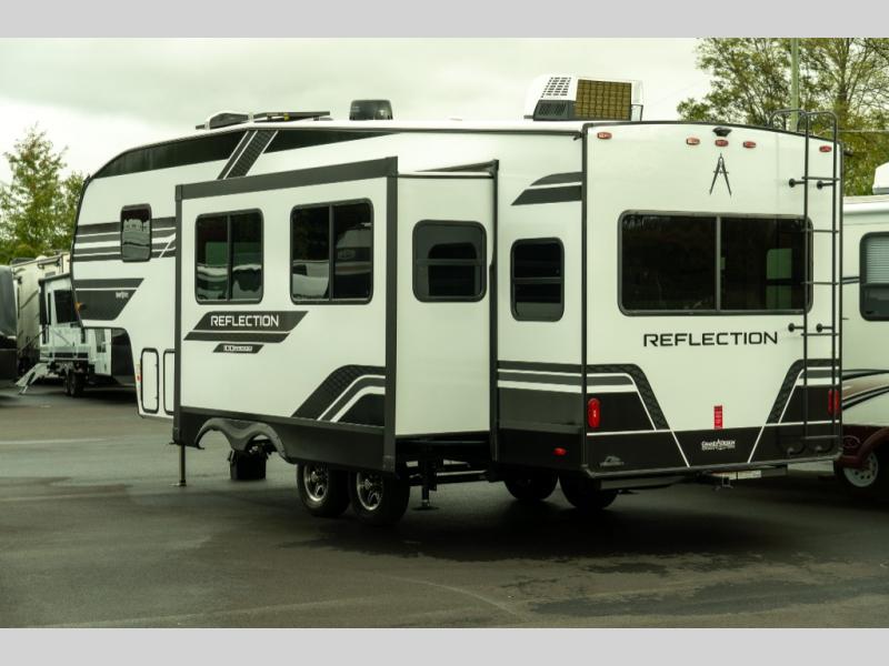 Each Reflection 100 Series fifth wheel by Grand Design is affordable and packed with luxury for unforgettable camping memories! The MorRyde CRE3000 suspension system and Goodyear Endurance tires will provide smooth towing from home to campground. And the solar package with a 180W solar panel, 60 Amp charge controller and 12V refrigerator will allow you to camp for longer periods of time and in more locations! A heated and enclosed underbelly with circulating heat is included in the Arctic 4-Seasons Protection Package, along with a double insulated roof and front cap, and thermofoil insulation under the holding tanks so you can camp all year long if you choose. You will appreciate having an on-demand water heater for hot showers after exploring, and the universal all-in-one docking station will let you monitor your RVs tanks levels and functions with ease. These models also include many luxurious interior features, such as premium Congoleum flooring, pleated shades, residential cabinetry, and matte black fixtures and hardware. Don't let the Reflection 100 Series fifth wheels pass you by!