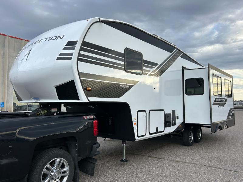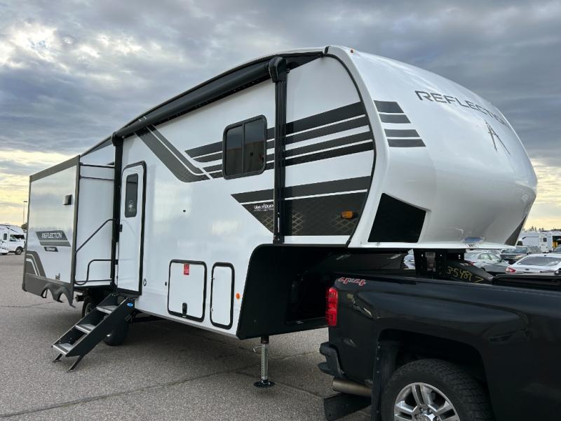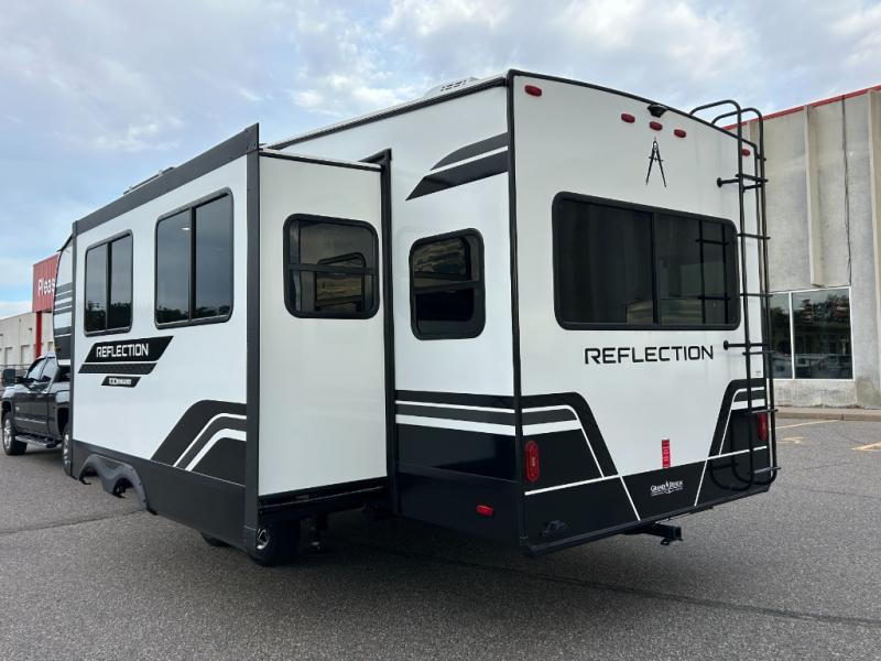 Each Reflection 100 Series fifth wheel by Grand Design is affordable and packed with luxury for unforgettable camping memories! The MorRyde CRE3000 suspension system and Goodyear Endurance tires will provide smooth towing from home to campground. And the solar package with a 180W solar panel, 60 Amp charge controller and 12V refrigerator will allow you to camp for longer periods of time and in more locations! A heated and enclosed underbelly with circulating heat is included in the Arctic 4-Seasons Protection Package, along with a double insulated roof and front cap, and thermofoil insulation under the holding tanks so you can camp all year long if you choose. You will appreciate having an on-demand water heater for hot showers after exploring, and the universal all-in-one docking station will let you monitor your RVs tanks levels and functions with ease. These models also include many luxurious interior features, such as premium Congoleum flooring, pleated shades, residential cabinetry, and matte black fixtures and hardware. Don't let the Reflection 100 Series fifth wheels pass you by!