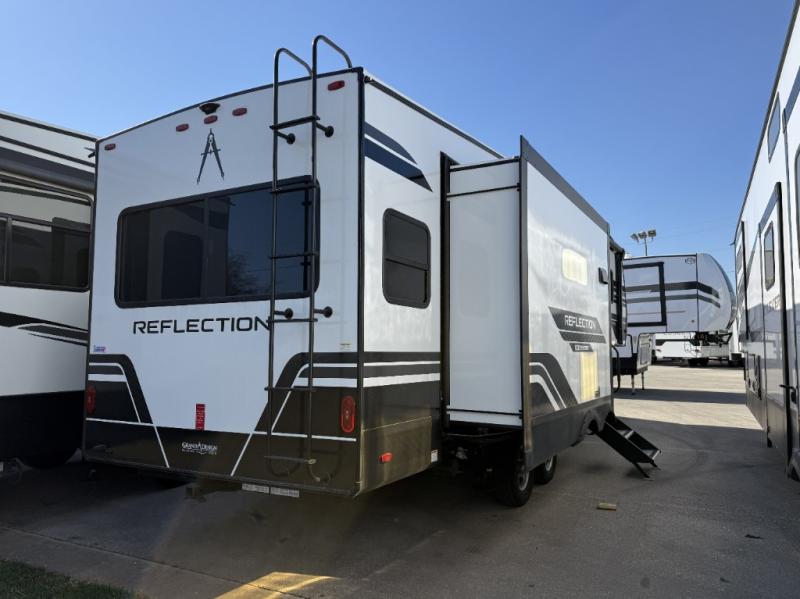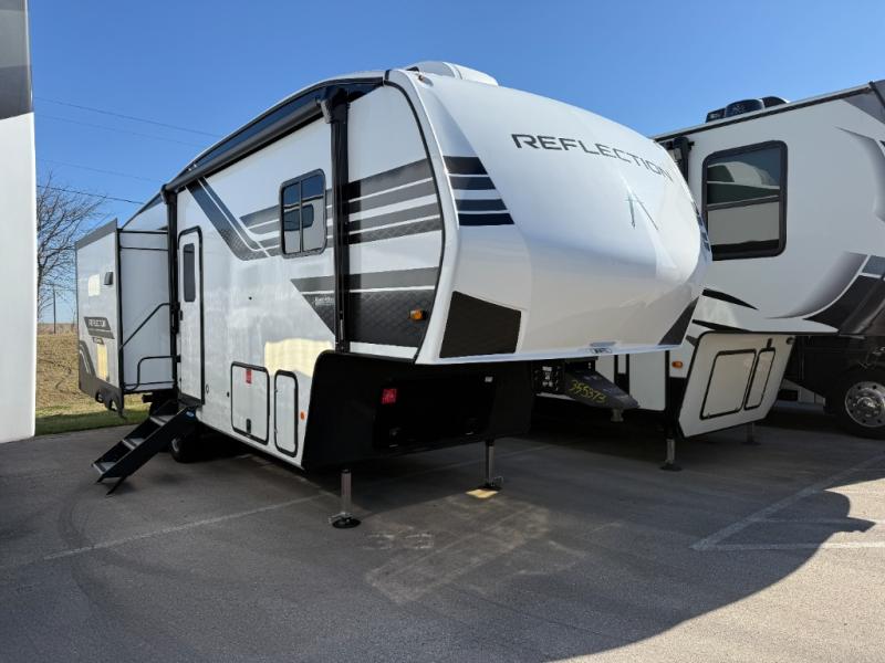 Each Reflection 100 Series fifth wheel by Grand Design is affordable and packed with luxury for unforgettable camping memories! The MorRyde CRE3000 suspension system and Goodyear Endurance tires will provide smooth towing from home to campground. And the solar package with a 180W solar panel, 60 Amp charge controller and 12V refrigerator will allow you to camp for longer periods of time and in more locations! A heated and enclosed underbelly with circulating heat is included in the Arctic 4-Seasons Protection Package, along with a double insulated roof and front cap, and thermofoil insulation under the holding tanks so you can camp all year long if you choose. You will appreciate having an on-demand water heater for hot showers after exploring, and the universal all-in-one docking station will let you monitor your RVs tanks levels and functions with ease. These models also include many luxurious interior features, such as premium Congoleum flooring, pleated shades, residential cabinetry, and matte black fixtures and hardware. Don't let the Reflection 100 Series fifth wheels pass you by!
