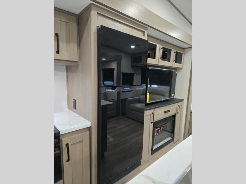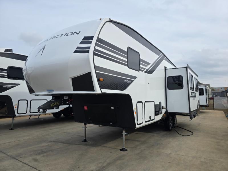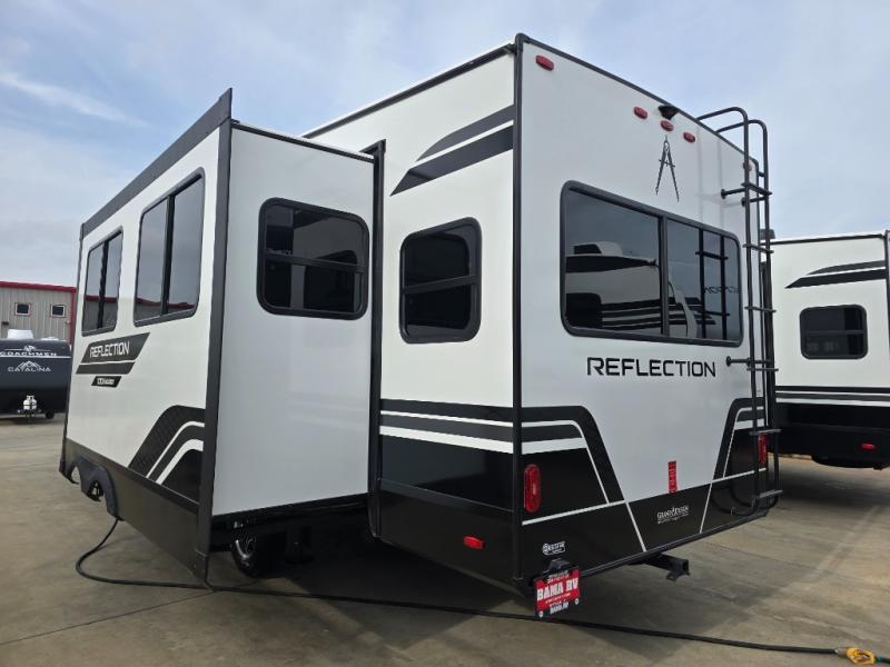 Each Reflection 100 Series fifth wheel by Grand Design is affordable and packed with luxury for unforgettable camping memories! The MorRyde CRE3000 suspension system and Goodyear Endurance tires will provide smooth towing from home to campground. And the solar package with a 180W solar panel, 60 Amp charge controller and 12V refrigerator will allow you to camp for longer periods of time and in more locations! A heated and enclosed underbelly with circulating heat is included in the Arctic 4-Seasons Protection Package, along with a double insulated roof and front cap, and thermofoil insulation under the holding tanks so you can camp all year long if you choose. You will appreciate having an on-demand water heater for hot showers after exploring, and the universal all-in-one docking station will let you monitor your RVs tanks levels and functions with ease. These models also include many luxurious interior features, such as premium Congoleum flooring, pleated shades, residential cabinetry, and matte black fixtures and hardware. Don't let the Reflection 100 Series fifth wheels pass you by!