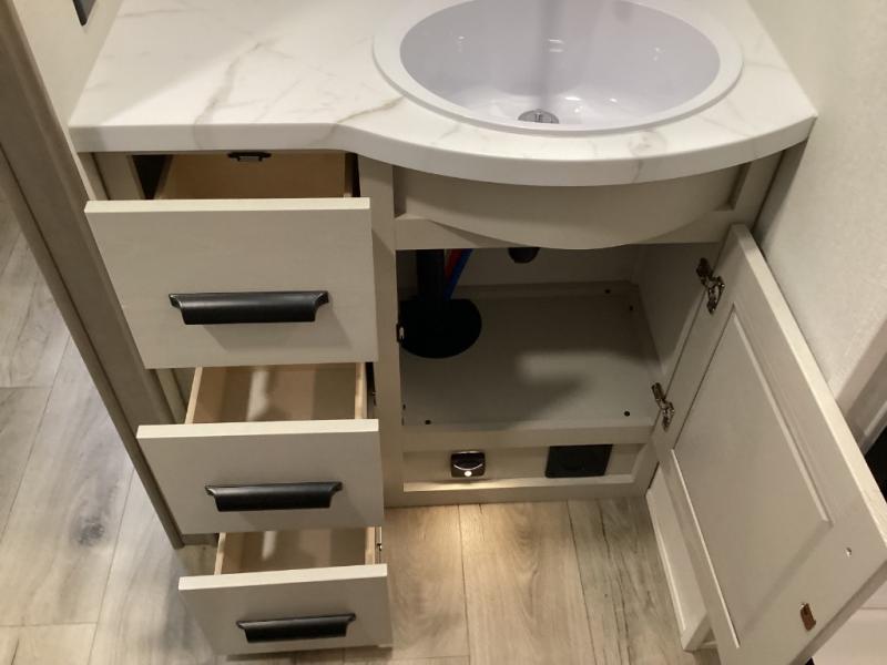 Modern Interior Design – Residential finishes and smart layouts feel more like a home than an RV.