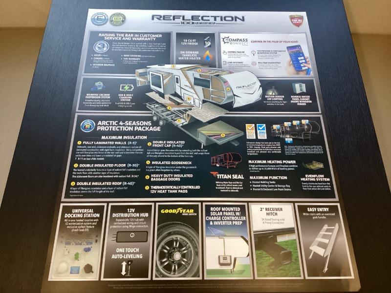 Designed for families who crave space, comfort, and durability, the Reflection 32BH delivers premium amenities and rugged construction in a lightweight fifth wheel that’s towable by many half-ton trucks.