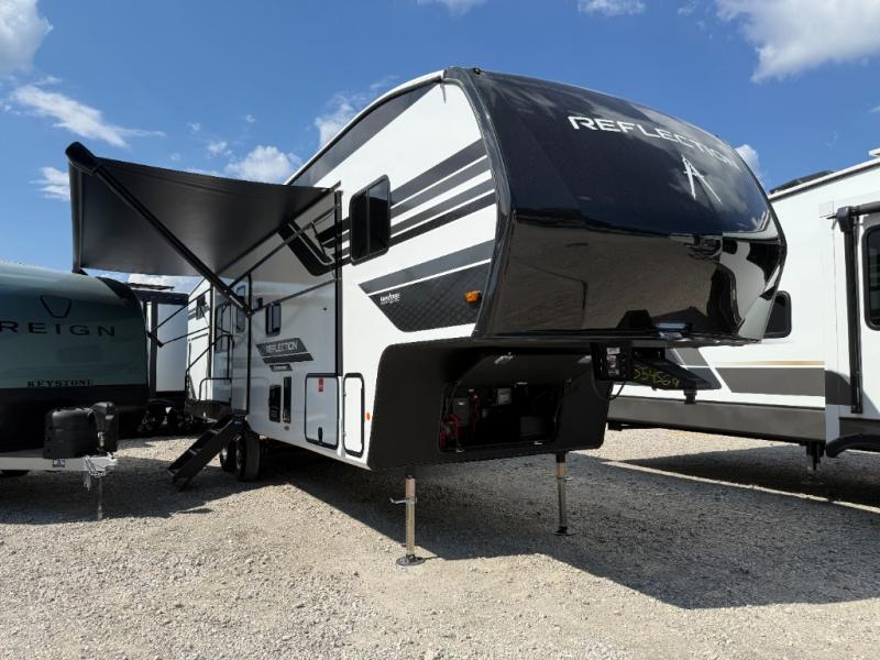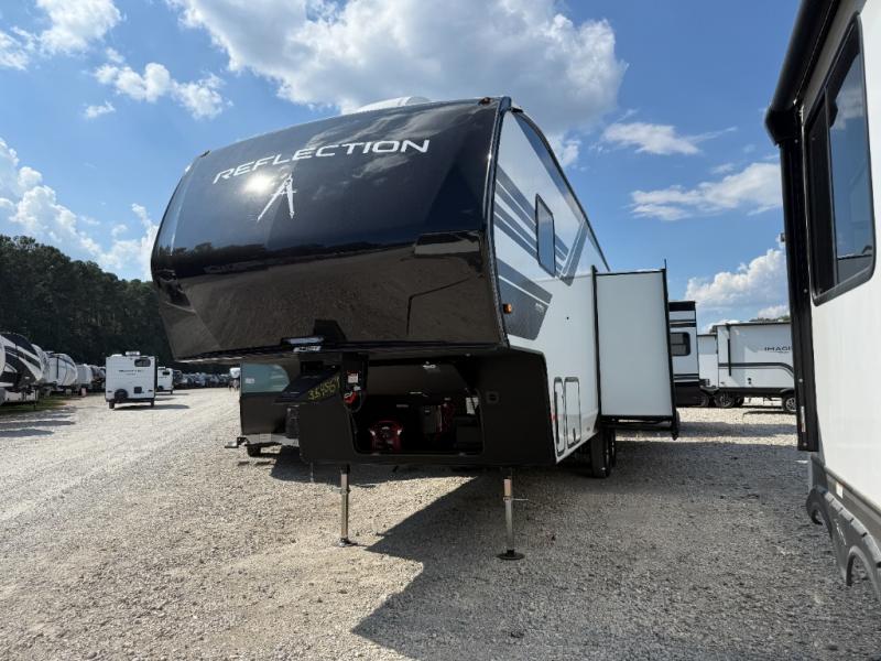 Each Reflection 100 Series fifth wheel by Grand Design is affordable and packed with luxury for unforgettable camping memories! The MorRyde CRE3000 suspension system and Goodyear Endurance tires will provide smooth towing from home to campground. And the solar package with a 180W solar panel, 60 Amp charge controller and 12V refrigerator will allow you to camp for longer periods of time and in more locations! A heated and enclosed underbelly with circulating heat is included in the Arctic 4-Seasons Protection Package, along with a double insulated roof and front cap, and thermofoil insulation under the holding tanks so you can camp all year long if you choose. You will appreciate having an on-demand water heater for hot showers after exploring, and the universal all-in-one docking station will let you monitor your RVs tanks levels and functions with ease. These models also include many luxurious interior features, such as premium Congoleum flooring, pleated shades, residential cabinetry, and matte black fixtures and hardware. Don't let the Reflection 100 Series fifth wheels pass you by!
