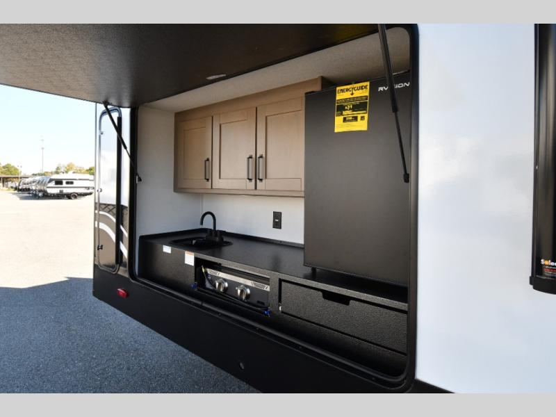 • Outdoor kitchen, power awning, and speakers for outdoor living