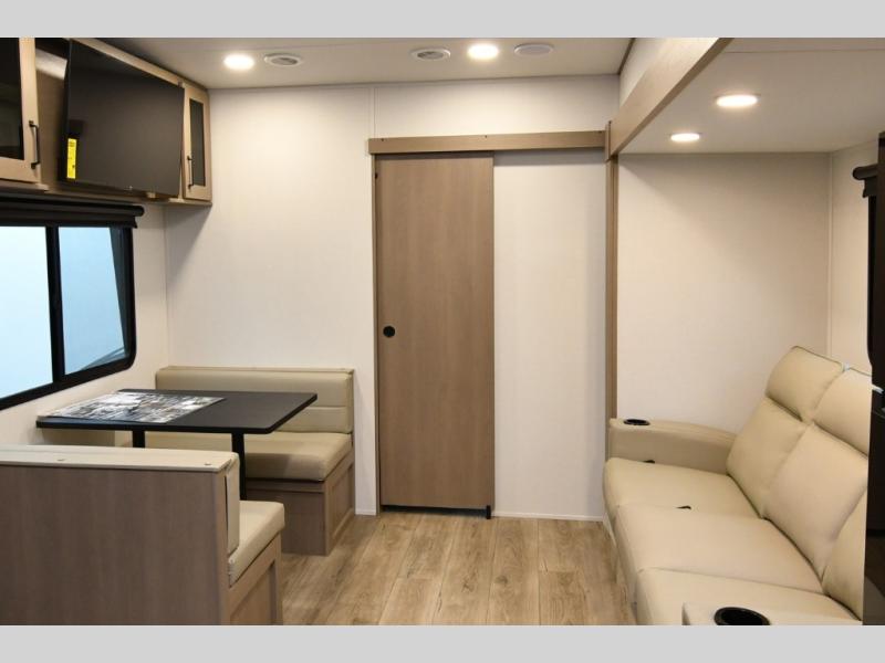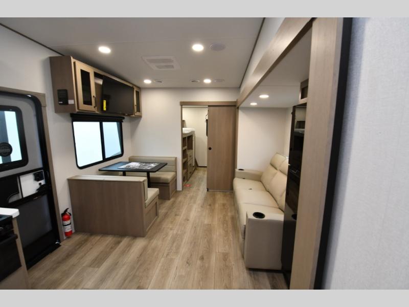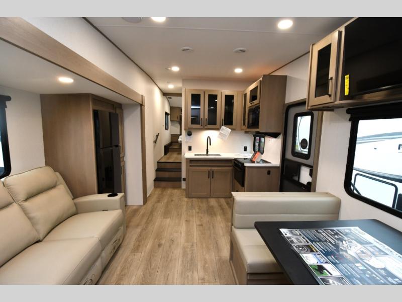 The 2026 Reflection 100 Series 32BH invites families to stretch out, settle in, and make the most of every mile. Wide-open living spaces, a private bunkhouse for the kids, and creature comforts that feel more like a vacation home than a travel trailer create an atmosphere designed for memory-making. From slow coffee mornings under the awning to late-night games around the booth dinette, this model brings comfort to every moment on the road. And with upgrades like the Peace of Mind, Ultimate Power, Deep Season Protection, and Solar Packages, you can chase adventure confidently—no matter the season or destination.