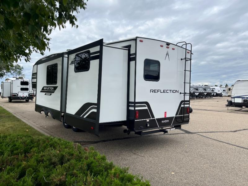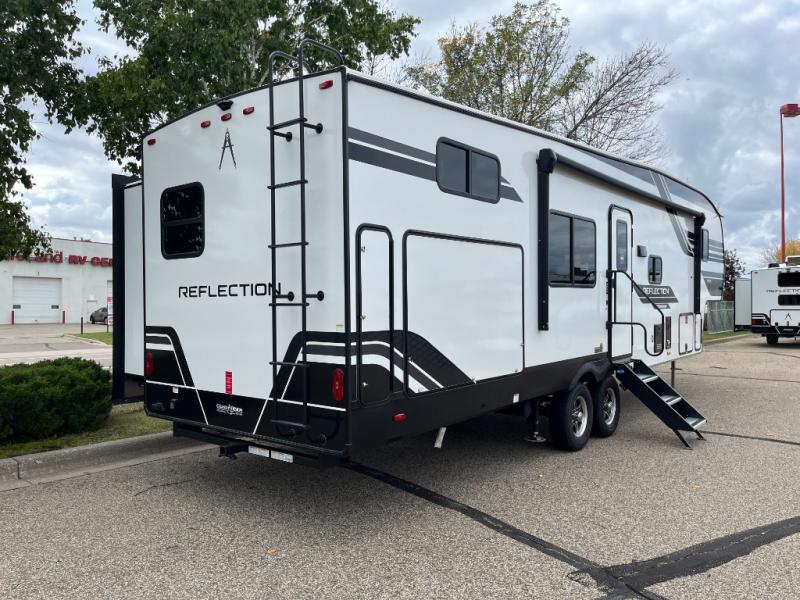 Each Reflection 100 Series fifth wheel by Grand Design is affordable and packed with luxury for unforgettable camping memories! The MorRyde CRE3000 suspension system and Goodyear Endurance tires will provide smooth towing from home to campground. And the solar package with a 180W solar panel, 60 Amp charge controller and 12V refrigerator will allow you to camp for longer periods of time and in more locations! A heated and enclosed underbelly with circulating heat is included in the Arctic 4-Seasons Protection Package, along with a double insulated roof and front cap, and thermofoil insulation under the holding tanks so you can camp all year long if you choose. You will appreciate having an on-demand water heater for hot showers after exploring, and the universal all-in-one docking station will let you monitor your RVs tanks levels and functions with ease. These models also include many luxurious interior features, such as premium Congoleum flooring, pleated shades, residential cabinetry, and matte black fixtures and hardware. Don't let the Reflection 100 Series fifth wheels pass you by!