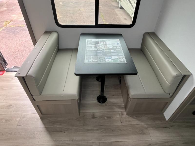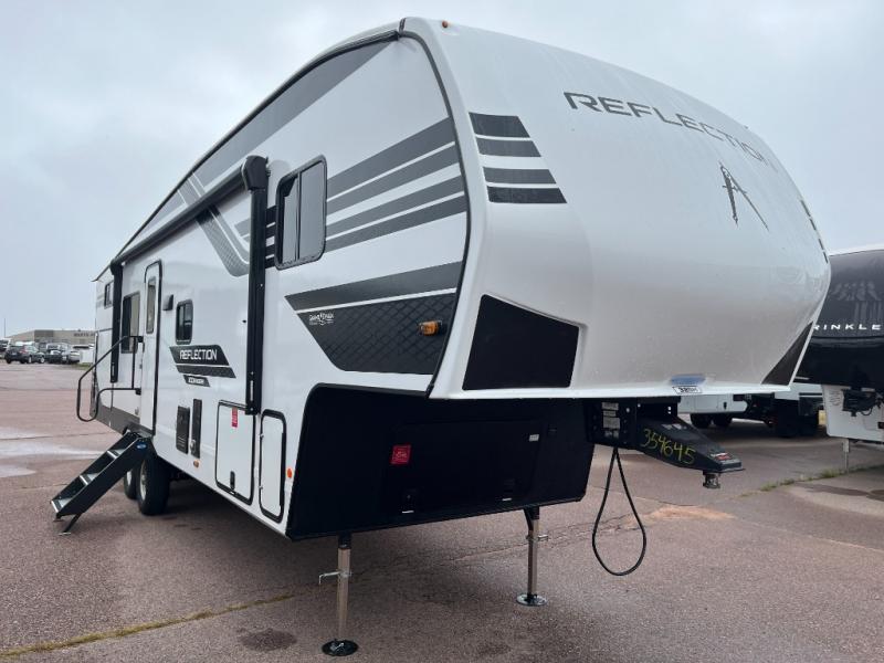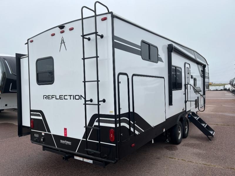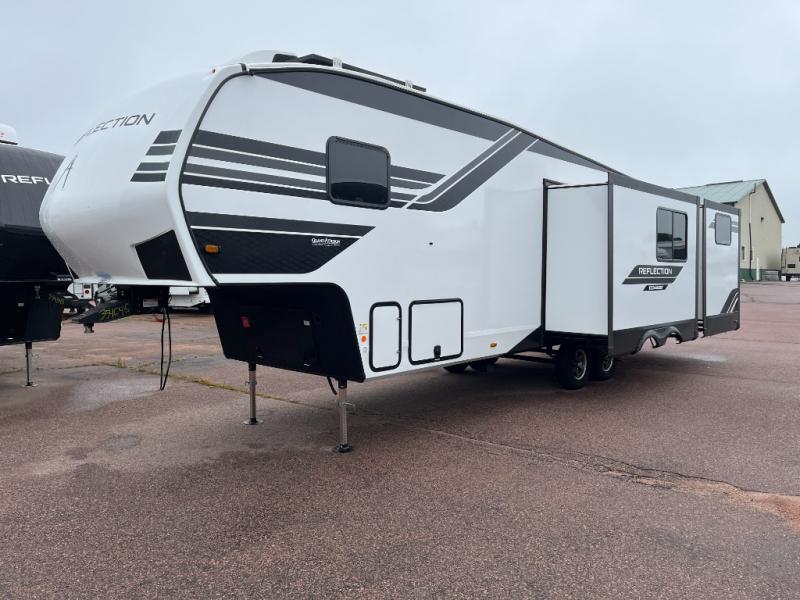 Each Reflection 100 Series fifth wheel by Grand Design is affordable and packed with luxury for unforgettable camping memories! The MorRyde CRE3000 suspension system and Goodyear Endurance tires will provide smooth towing from home to campground. And the solar package with a 180W solar panel, 60 Amp charge controller and 12V refrigerator will allow you to camp for longer periods of time and in more locations! A heated and enclosed underbelly with circulating heat is included in the Arctic 4-Seasons Protection Package, along with a double insulated roof and front cap, and thermofoil insulation under the holding tanks so you can camp all year long if you choose. You will appreciate having an on-demand water heater for hot showers after exploring, and the universal all-in-one docking station will let you monitor your RVs tanks levels and functions with ease. These models also include many luxurious interior features, such as premium Congoleum flooring, pleated shades, residential cabinetry, and matte black fixtures and hardware. Don't let the Reflection 100 Series fifth wheels pass you by!